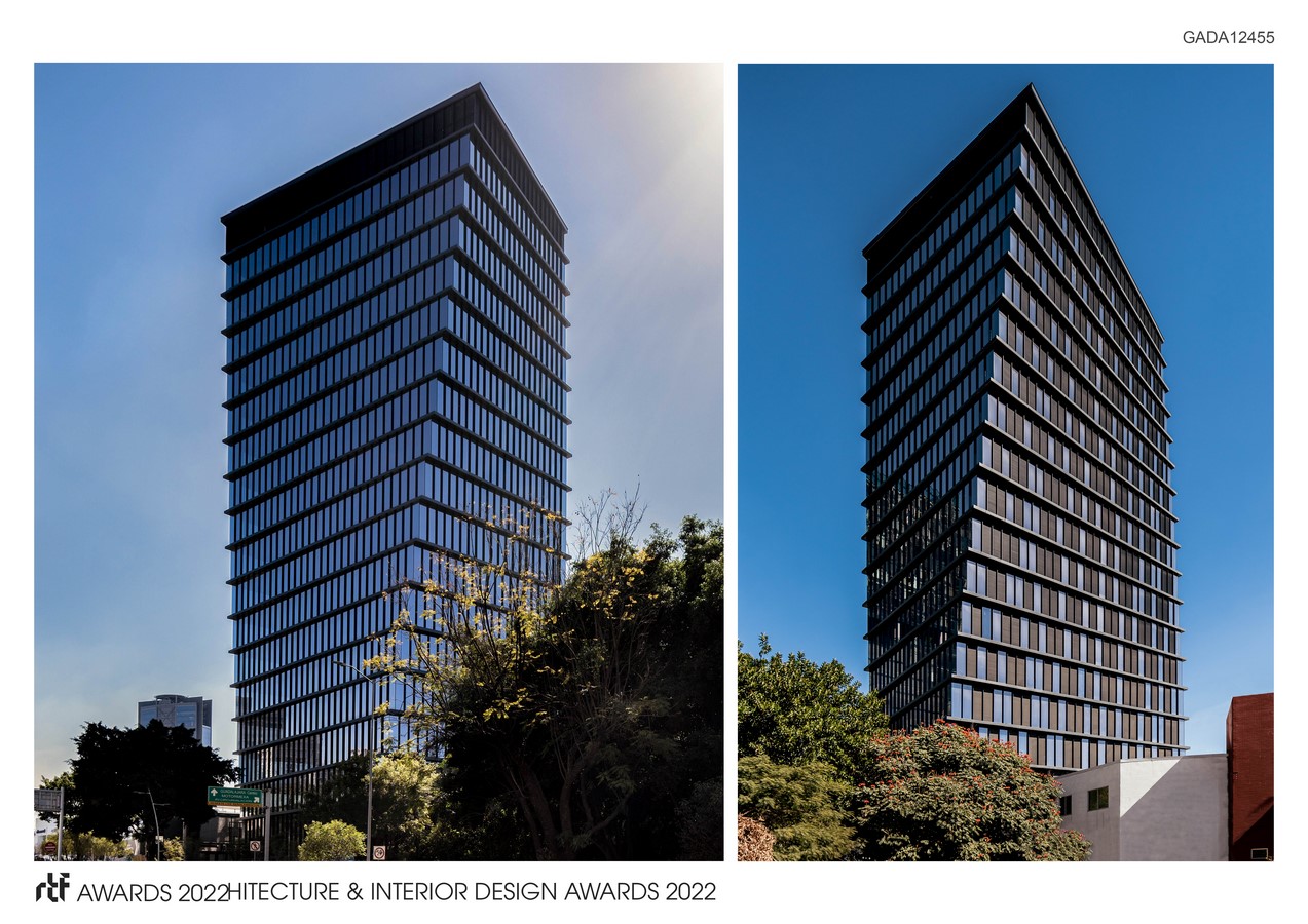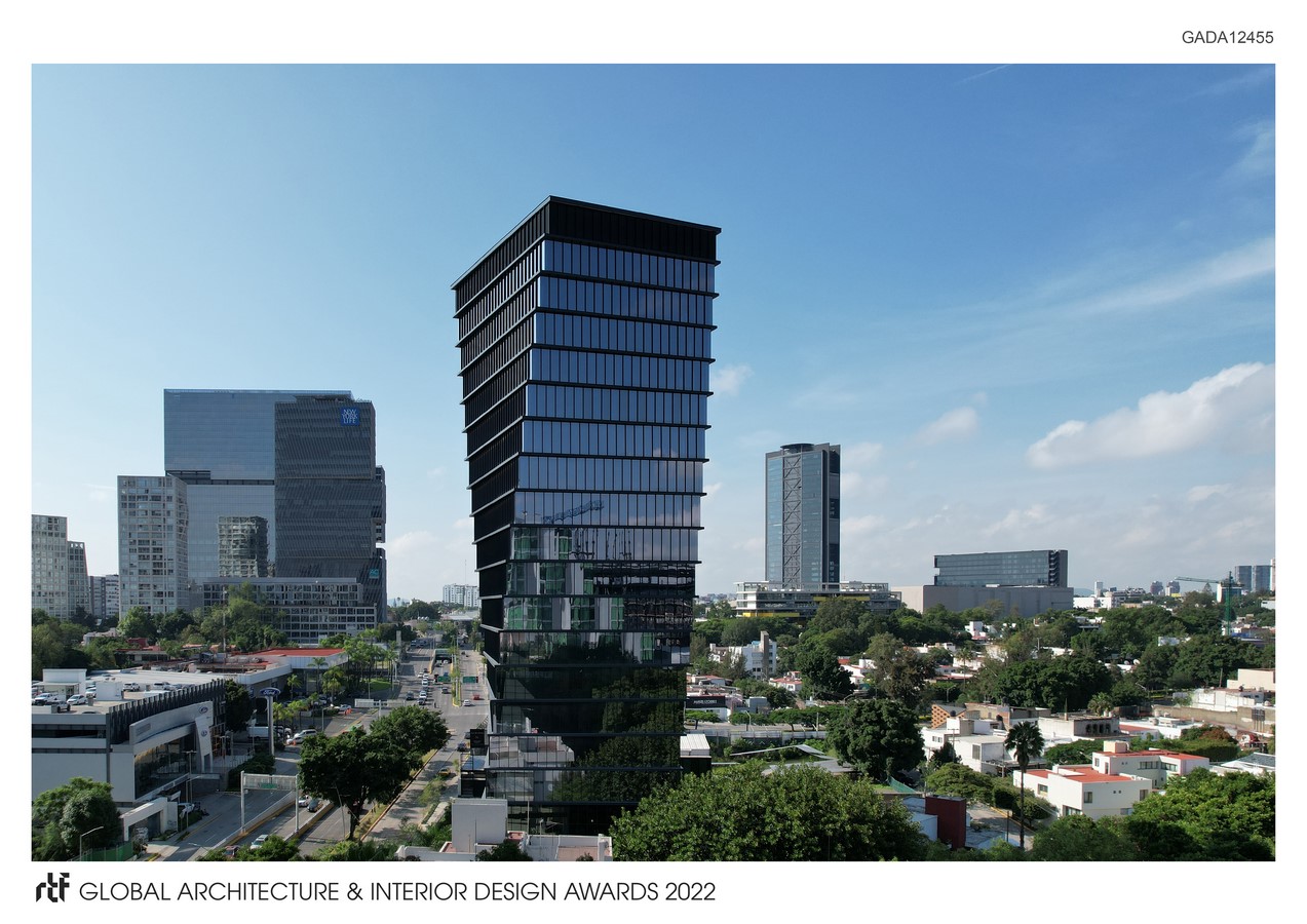 The project located in one of the most important financial arteries of the city of Guadalajara, has 18 levels of corporate offices and two commercial levels.