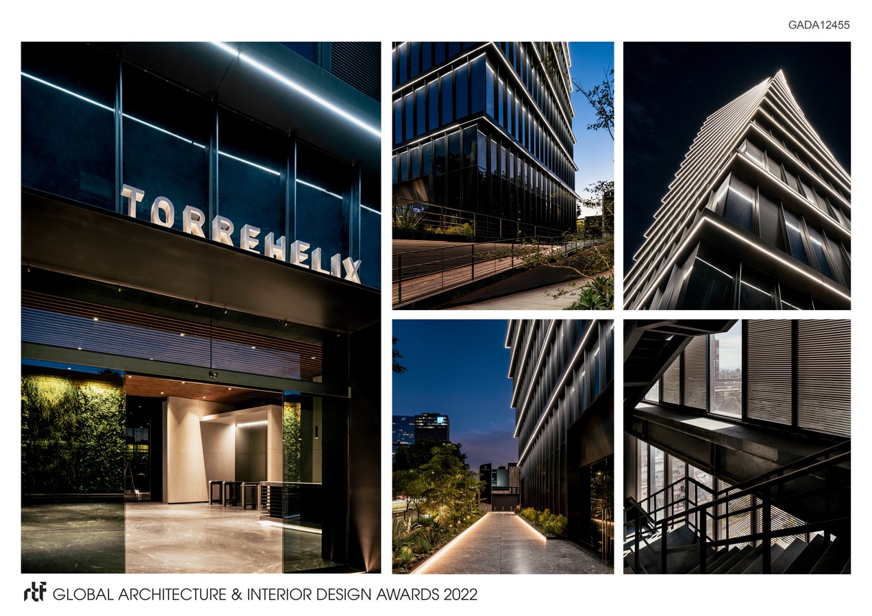 The decision of the turn is also related to the search for improvement in thermal behavior, this gesture allows the building to self-generate shade so that the sun is a source of natural lighting without affecting the temperature of the building for users; These factors, added to several strict processes and design decisions, make Torre Helix the first non-private corporate building with a LEED Platinum Certification in Guadalajara.