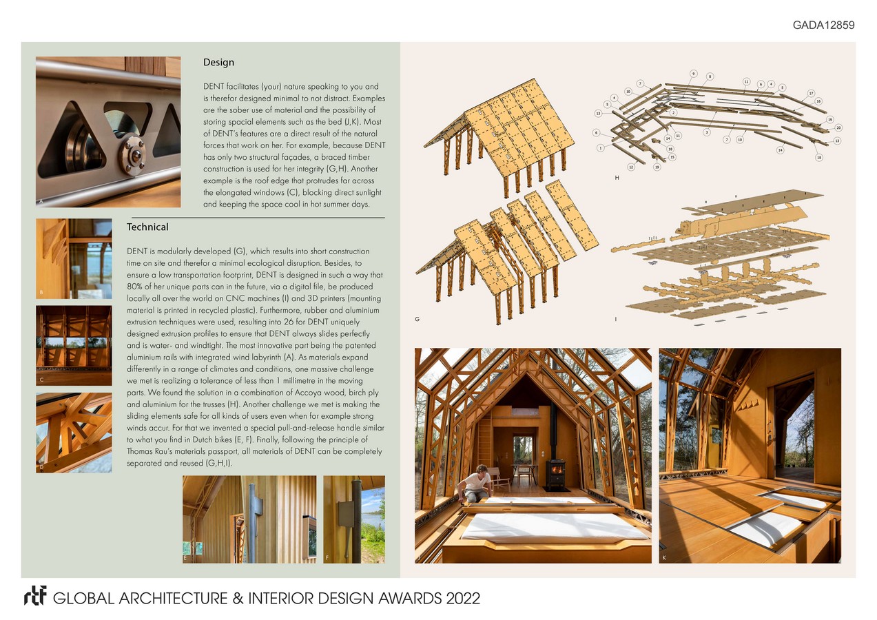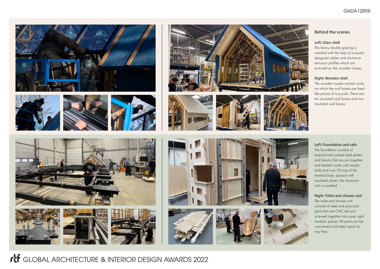 ANNA is modularly developed, which results into short construction time on site and therefor a minimal ecological disruption. Besides, ANNA is designed in such a way that 80% of her unique parts can in the future, via a digital file, be produced locally all over the world on CNC machines and 3D printers (mounting material). Furthermore, rubber and aluminium extrusion techniques were used, resulting into 26 for ANNA uniquely designed extrusion profiles to ensure that ANNA always slides perfectly and is water- and windtight. The most innovative part being the patented aluminium rails. Finally, following the principle of Thomas Rau’s materials passport, all materials of ANNA can be completely separated and reused.