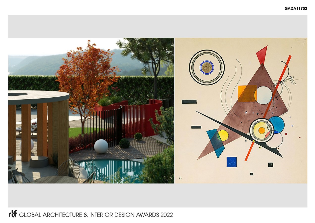The inspiration for the creation of such an unusual garden was the painting by Vasily Kandinsky “Composition II”. It is so difficult to imagine that this painting was painted almost 100 years ago, in 1923, and how relevant and modern it is in our present time. I was so impressed that I decided to create a project in tribute to this great master. Kandinsky is a brilliant Russian artist and I admire his talent.