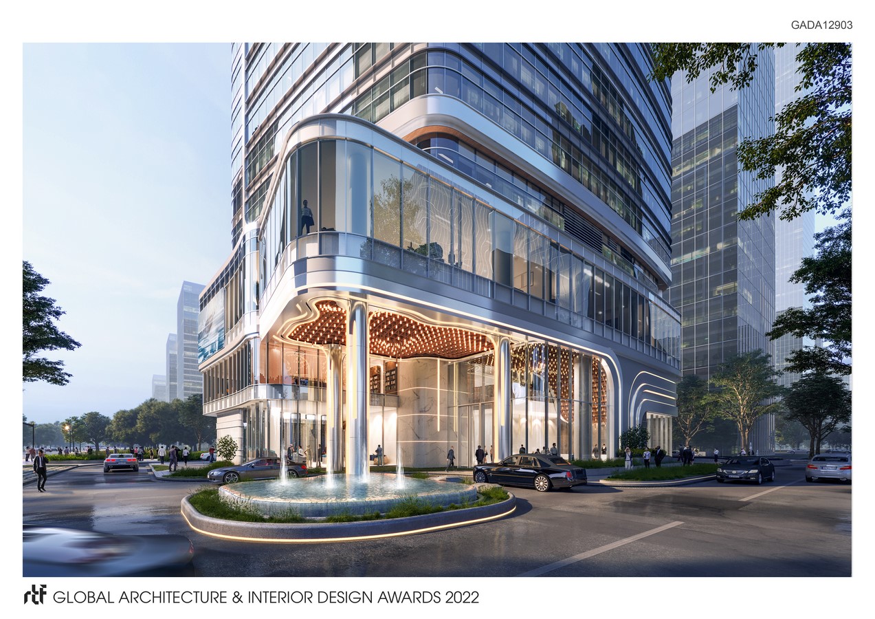 The 21,000 sqm tower consists of 8-storey HQ office, 9-storey bank head office and 3-storey retail podium. The tower’s convex and podium’s concave orientation is an intentional result of optimizing views with embracing gestures along the road intersection. The artistry of the building is fully represented through the crystallization effect on the façade design. The glass curtain wall plays a major role to the building’s purity with carefully selected high-performance material. Glass curtain wall uses energy saving, low-emissive, low-iron glass.