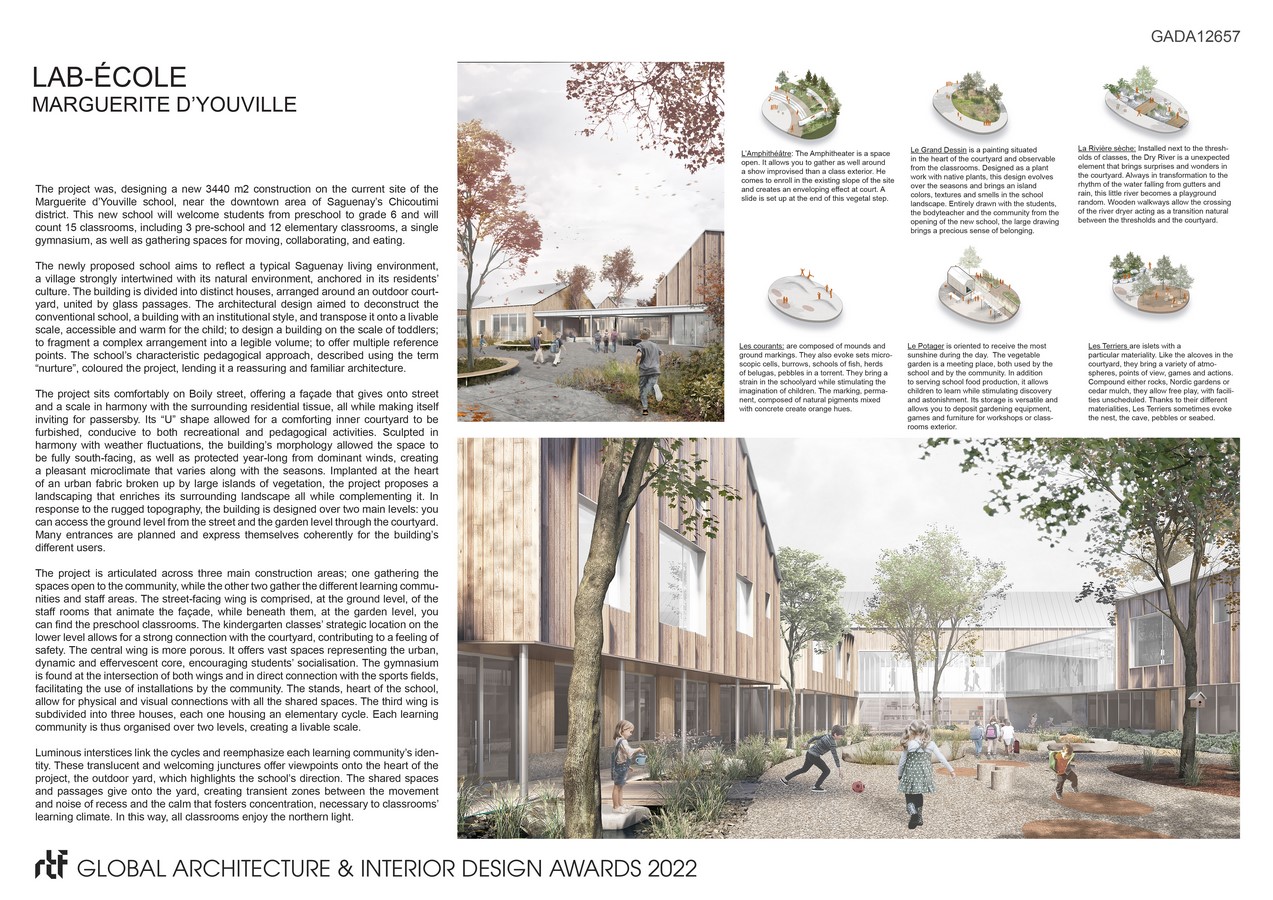The program was to design on the current site of the Marguerite d’Youville school, near the downtown area of Saguenay’s Chicoutimi district, a new school. This new school as been created to welcome students in all new spaces for learning, moving, collaborating, and eating.