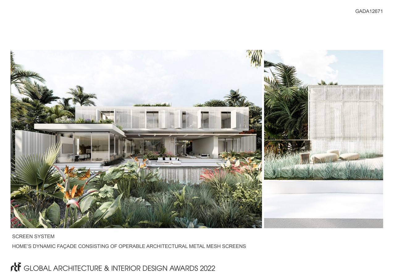 The design is certified LEED Gold, while carefully considers the desires and needs of three characters: nature, art and occupant, while retaining a respectful massing in context. Displaced pavilions are connected by a central art gallery aligned with the site’s optimal view. In-between are programed gardens that integrate nature deep into the floor plan. The second level is an efficient multi-bedroom volume wrapped in an operable screen system. This screen provides ample privacy for the NE Façade, and critical solar shading for glazing on the SW façade, protecting both art and occupants from harmful UV light.