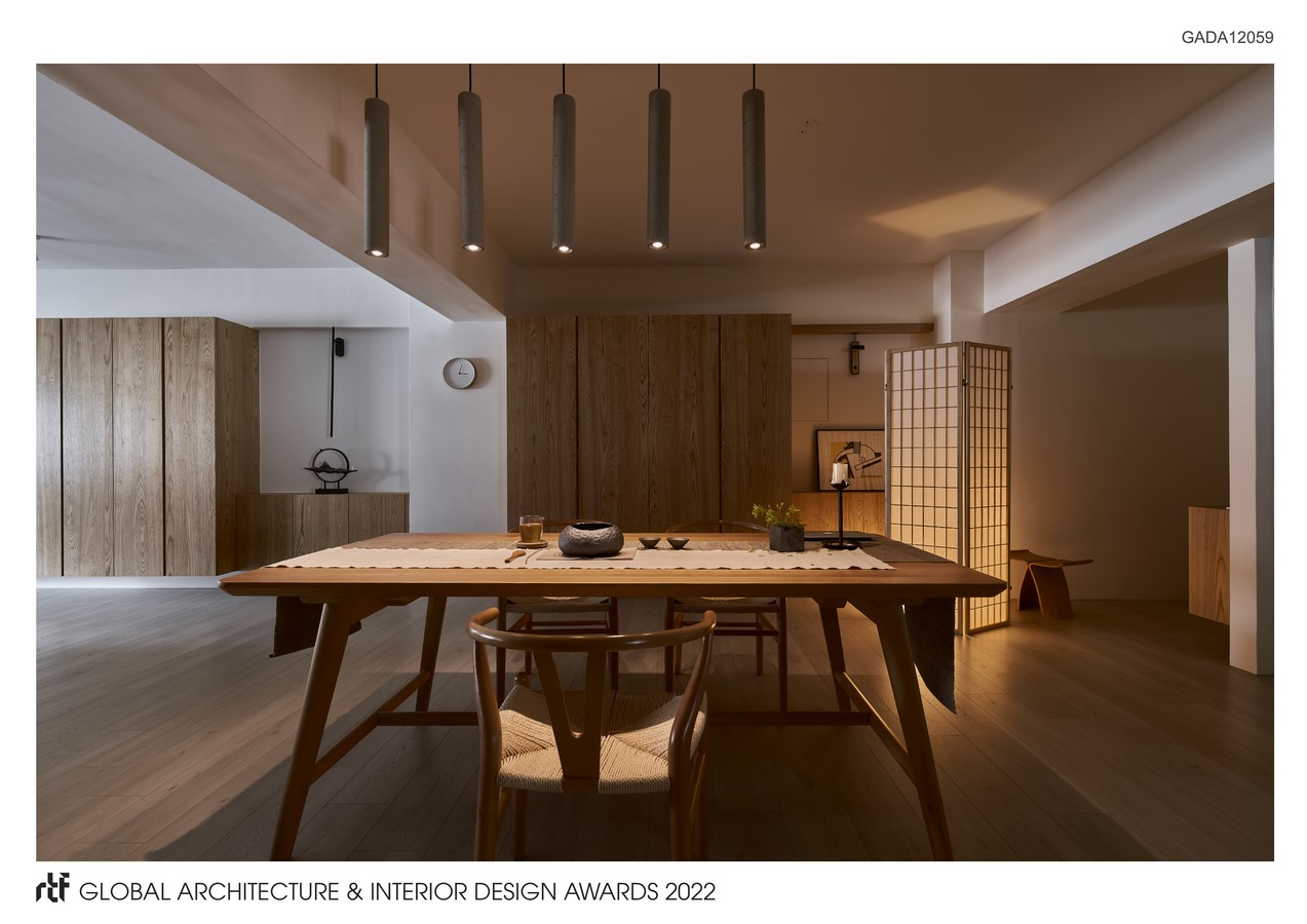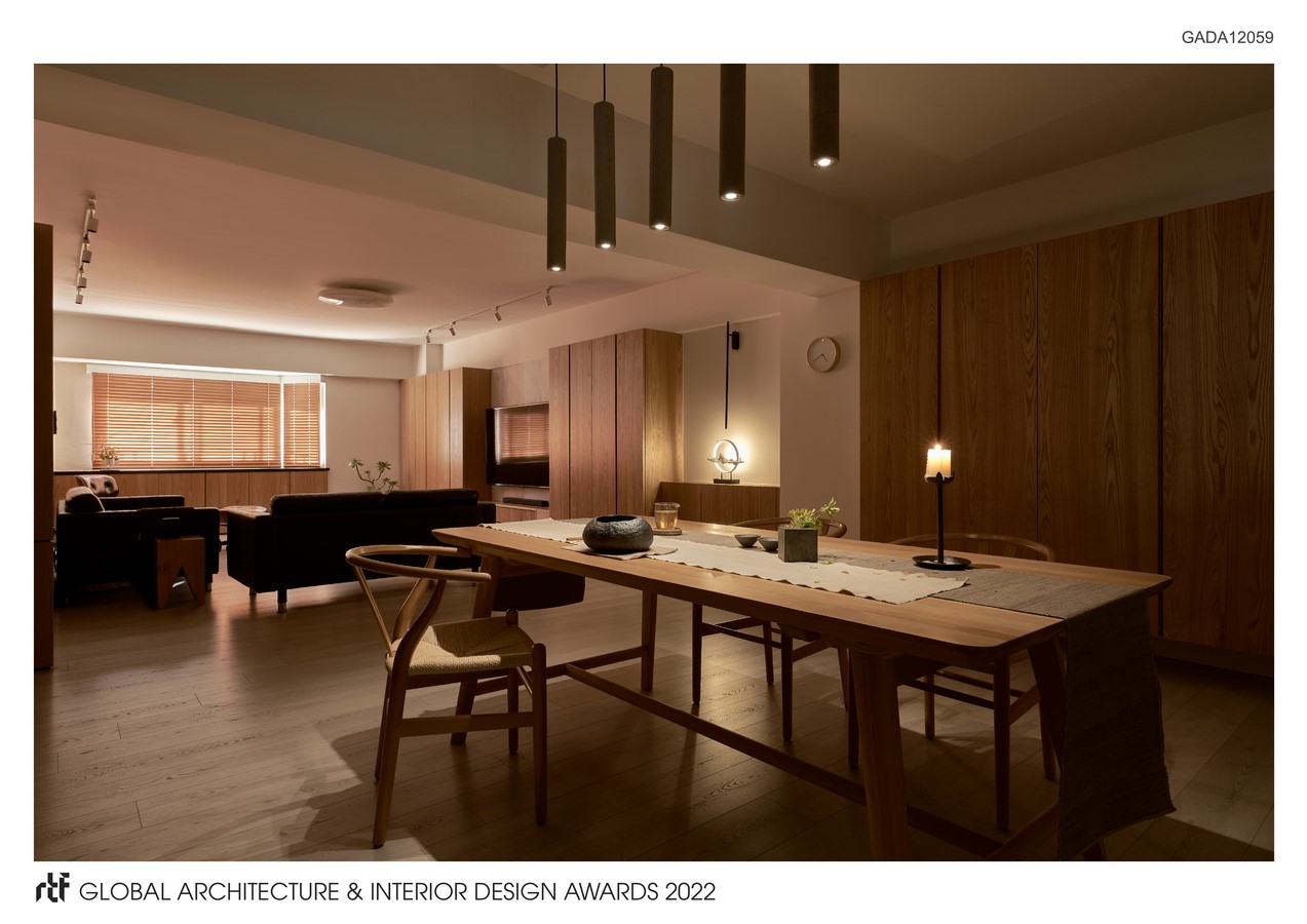 Due to the characteristics of his occupation, the resident pays great attention to the visiting feature of the house to facilitate social activities. Also because of the frequent earthquakes in Taiwan, it is necessary to protect the original building structure. The interior is carefully furnished, and the overall plan caters to different sizes of gatherings of families or friends. Even in open spaces, each area is clearly defined, increasing the efficiency of the use of the area.