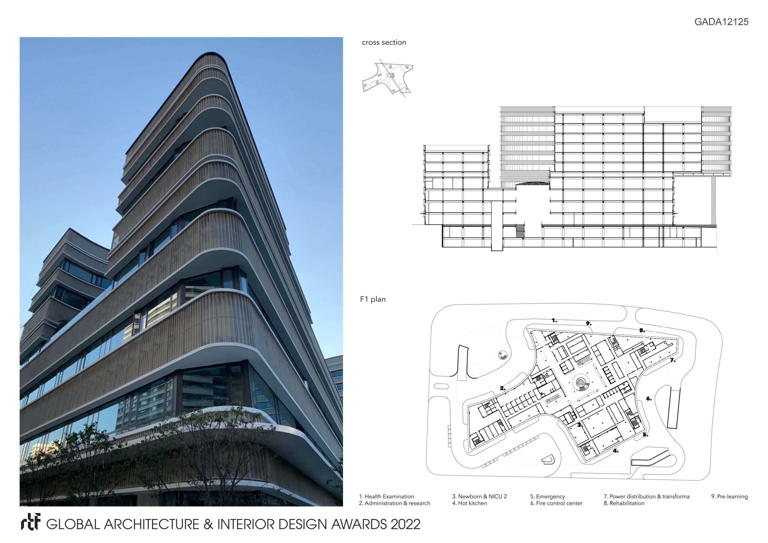 The soft curved building provides an independent maternity garden, gynaecology garden, inpatient garden and even a sunken garden for the outdoors of the hospital. The well-arranged curves of the buildingโฏbringโฏa closer feeling to the main atrium which is in the inner space of each floor.โฏFrom the entrance, the obstetrics and gynaecologists have their own circulation paths and do not interfere with each other. In the other hand, the research and laboratory area are also connected to the clinics and wards, facilitating the collaboration between different professionals.