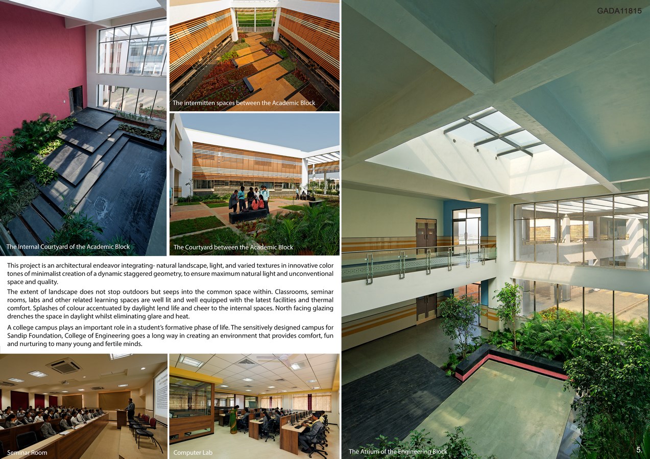 A college campus plays an important role in a studentโs formative phase of life. The sensitively designed campus for Sandip Foundation, College of Engineering goes a long way in creating an environment that provides comfort, fun and nurturing to many young and fertile minds.