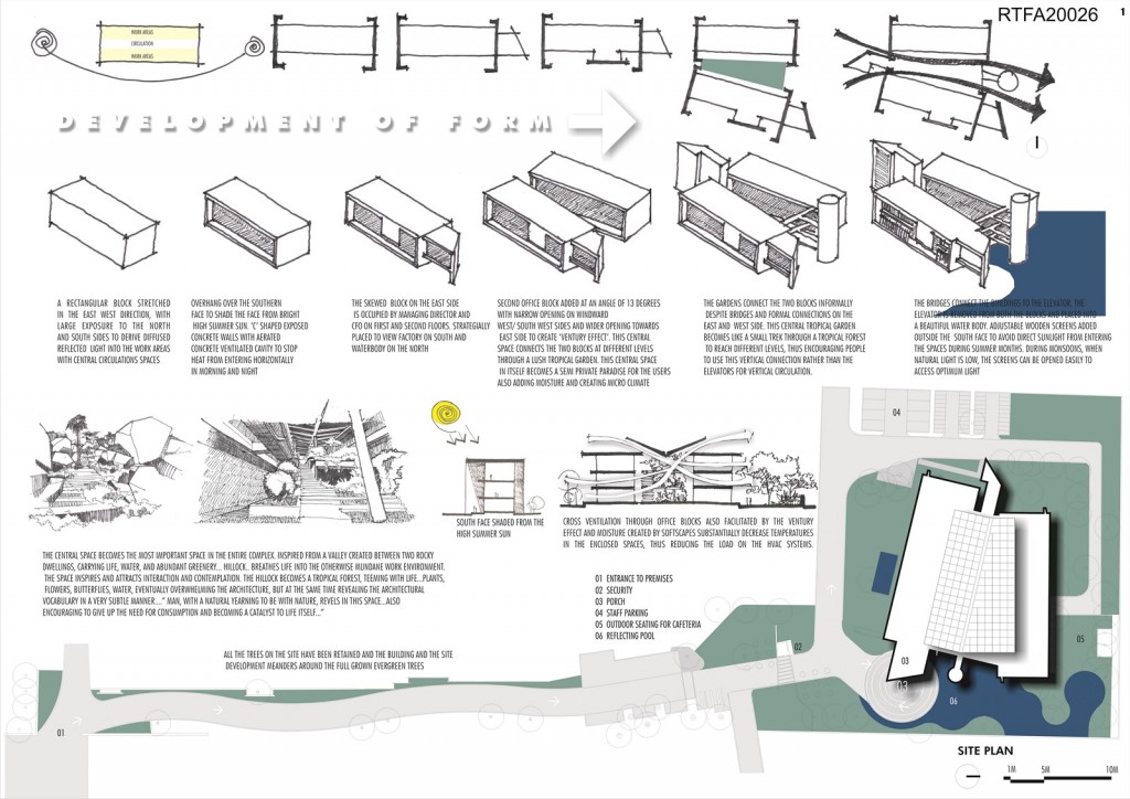 The Project: The clients wanted us to design a “Green Building”, which is only a trend in current society. We, as a society has always been frugal with resourses and have always carried the flags of sustainability and energy efficiency in all walks of life. Most buildings that are green rated are superficial in their approach and only attain sustainable mediocrity by limiting the design sensibility mostly to use of materials and finishes. As architects we can play a deeper role in creating an building.