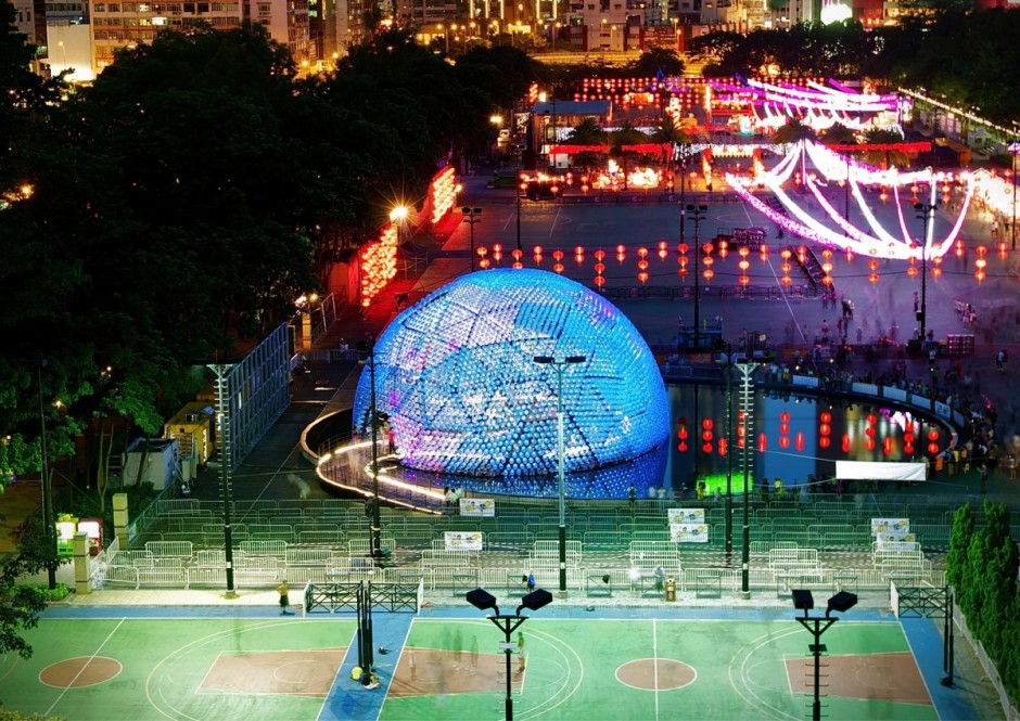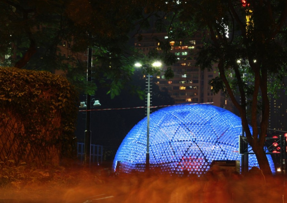 OVERALL EXCELLENCE: Rising Moon is a hemispheric art installation made from recycled plastic bottles and LEDs lights-up the Hong Kong cityscape. An illuminating geodesic dome created for the Mid-Autumn Festival Lantern Wonderland 2013 in Victoria Park in Hong Kong.