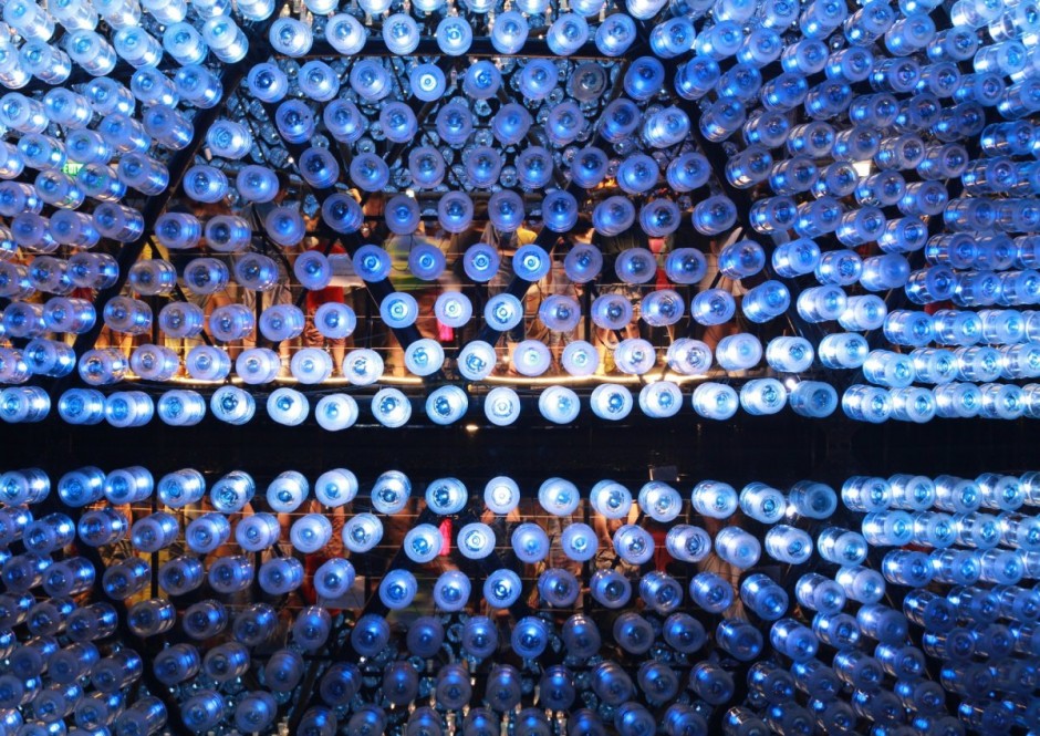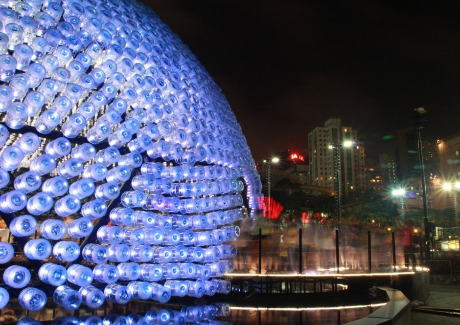 The Visual impact attracted visitors to approach the pavilion, soon they realised this is made of thousands of recycled plastic bottles and reacted with surprise. Many ended with silence, they start to ask themselves questions on what they have seen. This strong visual contradictions, strike the messages on sustainable lifestyle deep in every minds.
