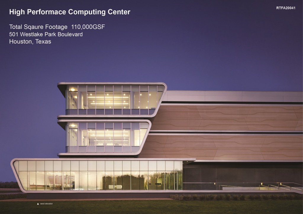 The new 110,000 square foot High Performance Computing Center is a three-story, stand-alone building housing all functions and equipment associated with High Performance Computing. The HPC facility is a Data Center consisting of “white space” (closed, server racks) with supporting office space on levels two and three and mechanical, electrical and plumbing support systems on level one. As a state-of-the-art facility, the High Performance Computing Center contains what is considered to be “the world’s largest supercomputer for commercial research”.