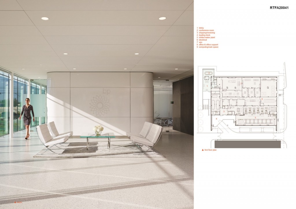 The project is located on a corporate Campus in the Houston Energy Corridor about 20 miles west of Downtown Houston along the Interstate 10. The public program components are oriented toward the freeway and feeder road to the north and a service access drive, loading area, cooling towers and generators are contained to the south between the HPC building and an existing garage.