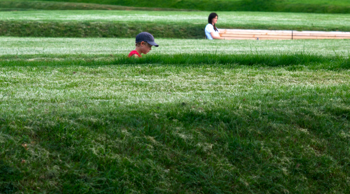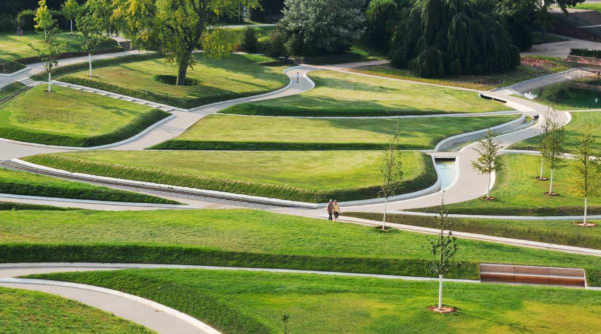 Two themes that characterise Killesberg are the starting point for the design: a soft, near-natural landscape, and man-made quarries as hard topographies. The hard forms of a typical quarry topography change over time, morphing from sharply broken materials into a softer landscape of green regrowth. This process of change has been interpreted at Park Killesberg by bringing vast quantities of soil into the former quarry areas and exhibition grounds, simulating the long natural process of smoothing out irregularities by creating a new topography of lawn ‘cushions’ between path systems. A new landscape arises, and it tells a story.