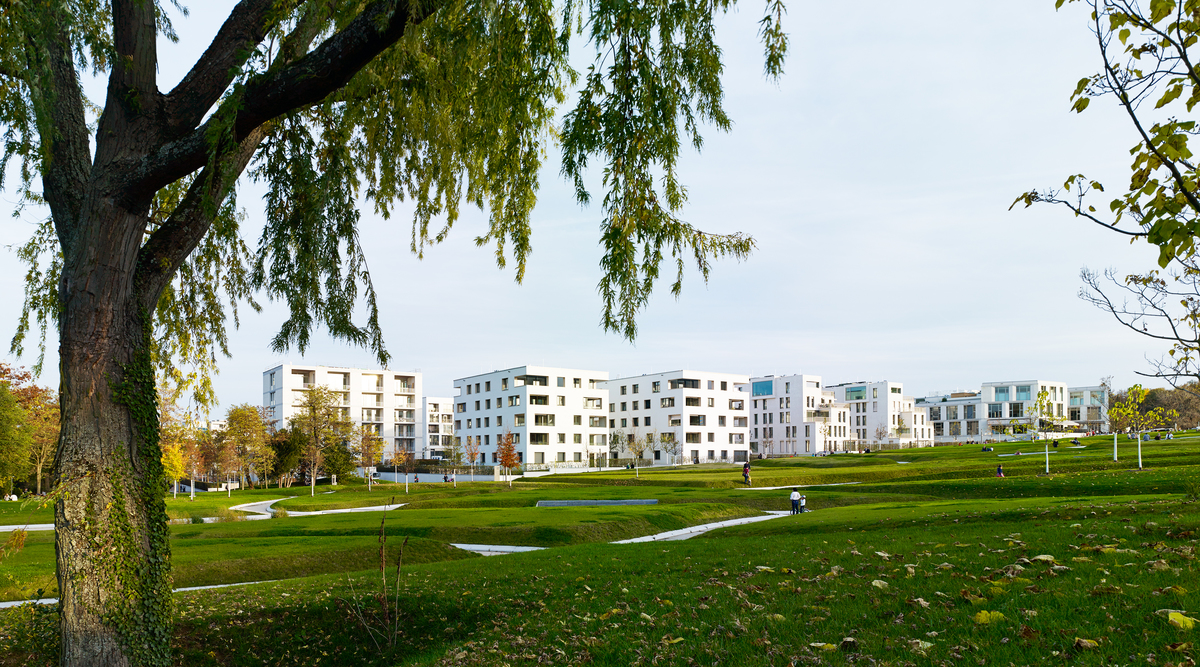 The concept of sustainable and ecological development is an underlying theme. Rain water from the roofs of the new development is collected in an underground cistern from where it is piped to a new lake and returned to the water cycle. With their individual microclimatic conditions, the park’s meadow cushions are biotopes for various types of flora and fauna. The meadow grasses require mowing only twice a year, considerably reducing ongoing maintenance costs. The landscape of the Park Killesberg extension interconnects with the adjacent residential area, whose detached houses open directly to the park, as well as forming a direct connection to the centre of the new district.