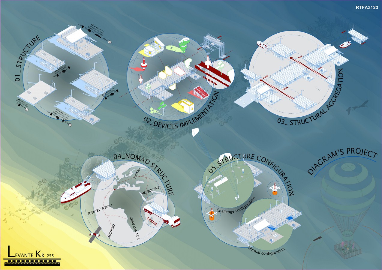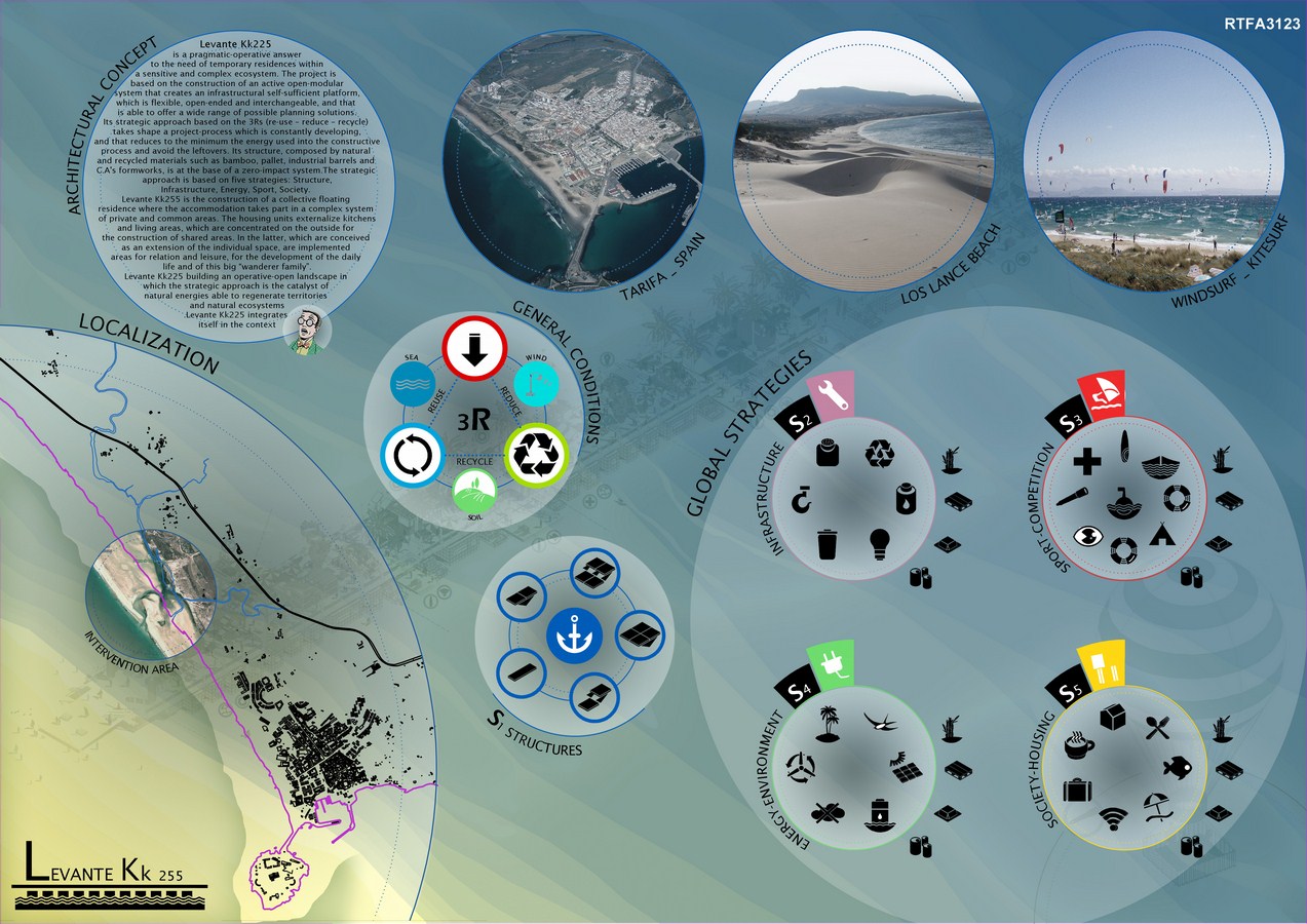 Levante Kk225 is a pragmatic-operative answer to the need of temporary residences within a sensitive and complex ecosystem. The project is based on the construction of an active open-modular system that creates an infrastructural self-sufficient platform, which is flexible, open-ended and interchangeable, and that is able to offer a wide range of possible planning solutions.