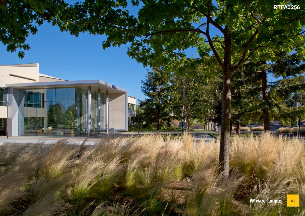 Set within Palo Alto’s prestigious Stanford Research Park and rich with beautiful vistas, VMware’s award-winning Silicon Valley headquarters and corporate campus is designed with an appropriateness of scale and sensitivity to the natural setting. With eighteen buildings and four parking garages that total 1.6 million square-feet, the 100-acre campus is organized around interconnected outdoor garden spaces and water features, with exterior bridges joining the upper floors.