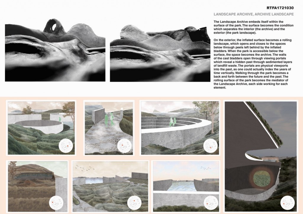 In 2001, the City of New York set up a competition for the redesign of the land, creating a new identity; Freshkills Park. However, the winning proposal was just that; a facade. The exploration for the Embedded Collective began with pushback to the proposed facelift of the landscape, which wishes to cover and forget about the toxic wastescape buried underneath. The Embedded Collective is a new proposal for the rebuild of Freshkills Park with an ambition to create a Landscape Archive, where the past identities embedded into the land can be explored and remembered.