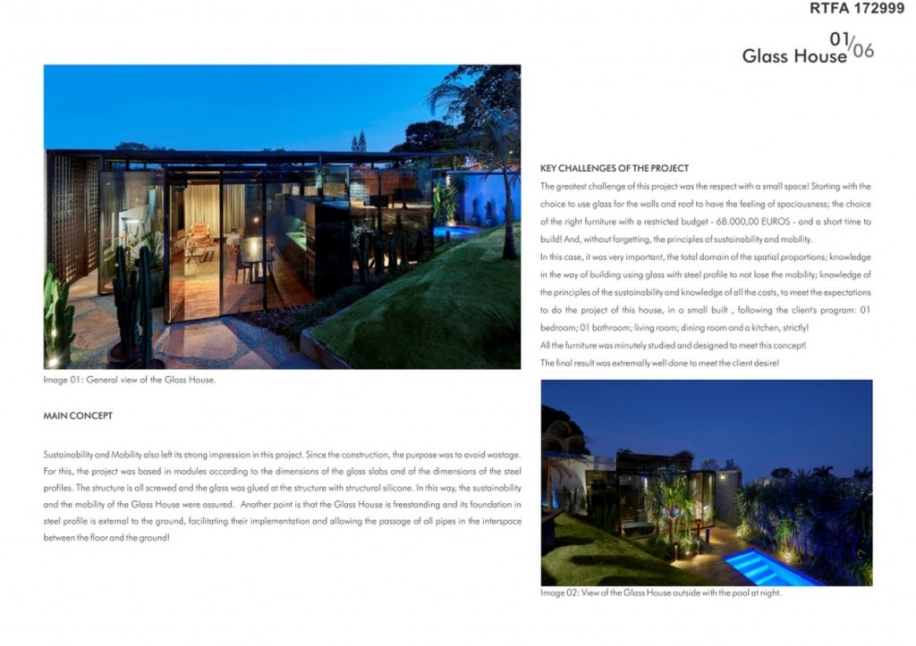 Sustainability and Mobility also left its strong impression in this project. Since the construction, the purpose was to avoid wastage and do not generate waste. For this, the project was based in modules according to the dimensions of the glass slabs and of the dimensions of the steel profiles. The structure is all screwed and the glass was glued at the structure with structural silicone. In this way, the sustainability and the mobility of the Glass House were assured.  The Glass House did not generate waste and it can be transported to where the residents want to go! Another point very important is that the Glass House is freestanding and its foundation in steel profile is external to the ground, facilitating their implementation and allowing the passage of all pipes in the gap between the floor and the ground!