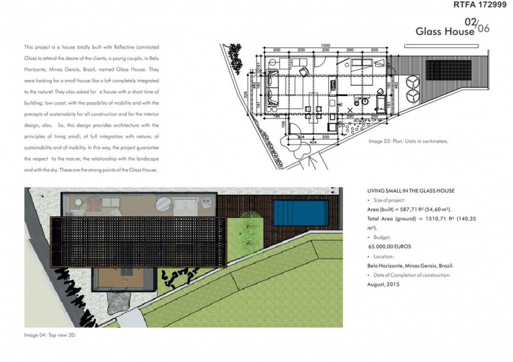 This project is a house totally built with Reflective Laminated Glass to attend the desire of the clients, a young couple, in Belo Horizonte, Minas Gerais, Brazil, named Glass House. They were looking for a small house like a loft completely integrated to the nature! They also asked for  a house with a short time of building; low coast; with the possibility of mobility and with the precepts of sustainabiity for all construction and for the interior design, also.  So, this project provides architecture with the principles of living small; of full integration with nature; of sustainability and of mobility. In this way, the project guarantee the respect  to the nature; the relationship with the landscape and with the sky. These are the strong points of the Glass House.