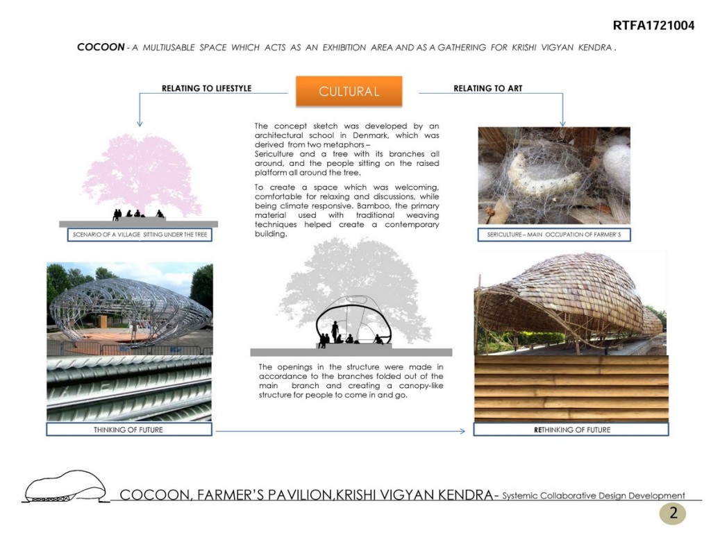 The cocoon has been constructed as a Multi-use space that accommodates 40 persons simultaneously acting as an exhibition area for Krishi Vigyan Kendra.