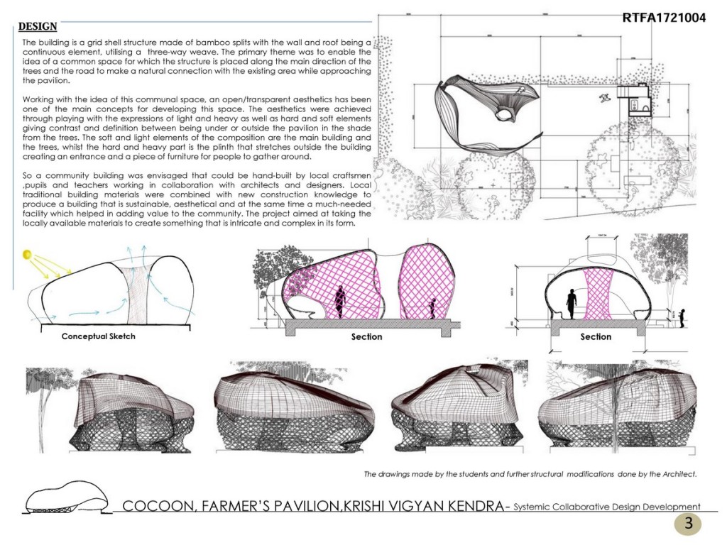 - The challenge was to convert the concept sketch into a workable design with Bamboo which was locally available and would guide the construction process.