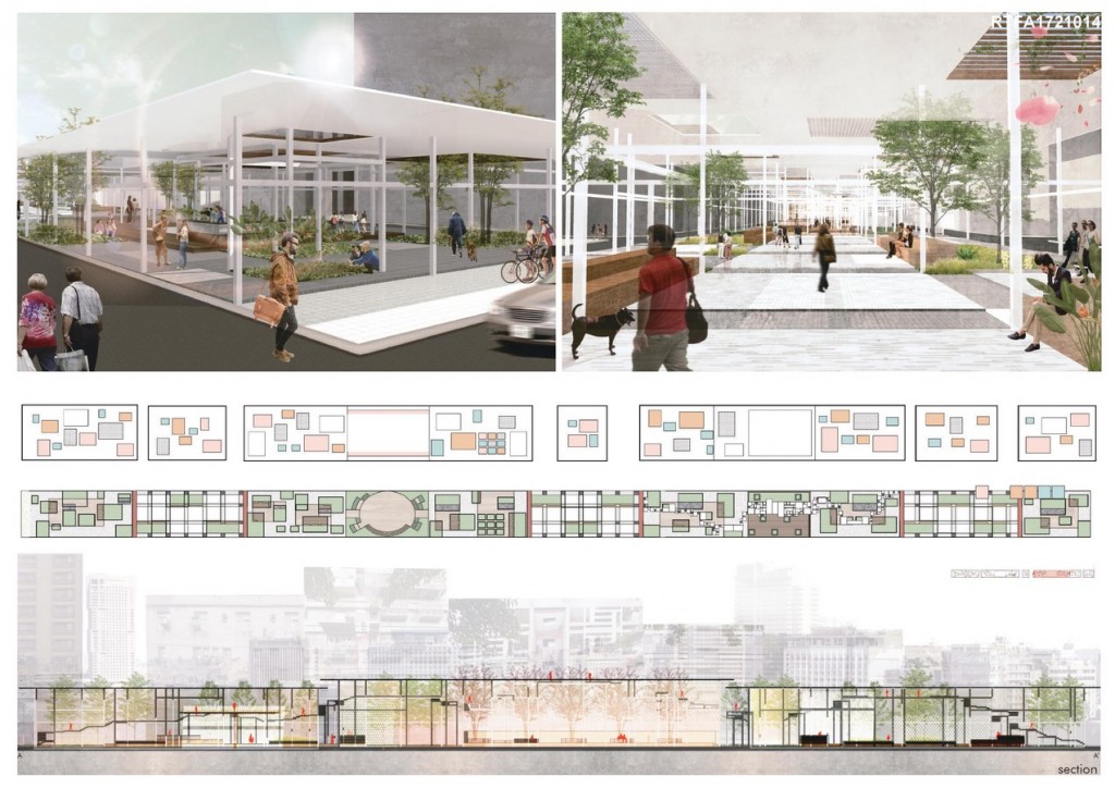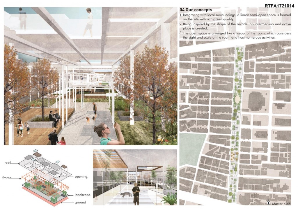 We try to redesign this urban poché with rich green quality and extend its publicity. The site is given with traditional spatial values and images, combining with idea of urban landscape. Visitors will experience various activities and delicate natural environmental arrangement. The linear public eco-courtyard is set up like a green corridor of city. We expect this corridor to connect its neighborhoods and redefine an active community.