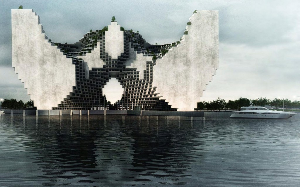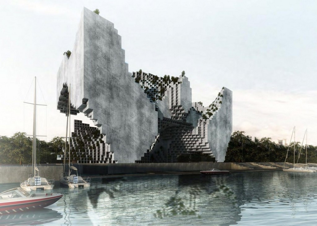 Housing units are planned along the perimeter of the building receiving ample light and ventilation. This enriches an internal community between the housing units, giving life to various recreational activities such as yoga, children’s play, herb-gardening, community kitchen, community dinning and recreational spaces. Largemonoliths serve as vertical water reservoirs. Roof rain water is chanelled into these water reservoir monoliths which provide ample water supply to supplement urban farming activities throughout the year.This housing program is also further supplemented by green elements such as greenhouse, green-walls, light-wells and a green roof.