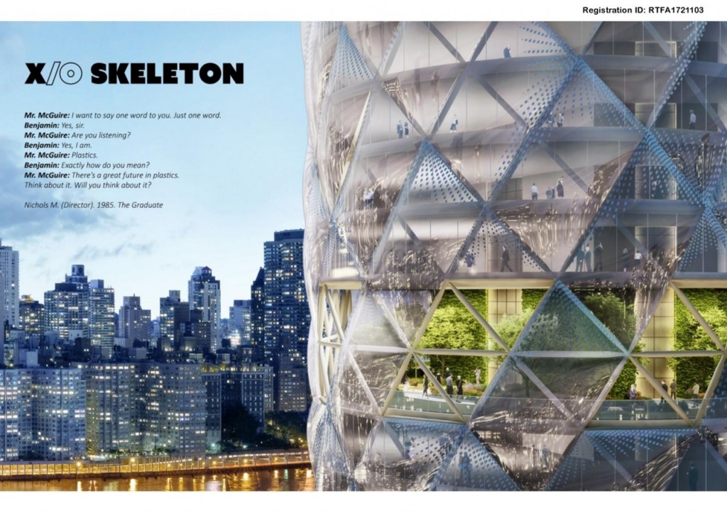 XO Skeleton proposes a new way of thinking about high rise façade construction. Drawing from natural formations like coral reefs, we propose to combine structure and skin in a single X/O skeleton system.