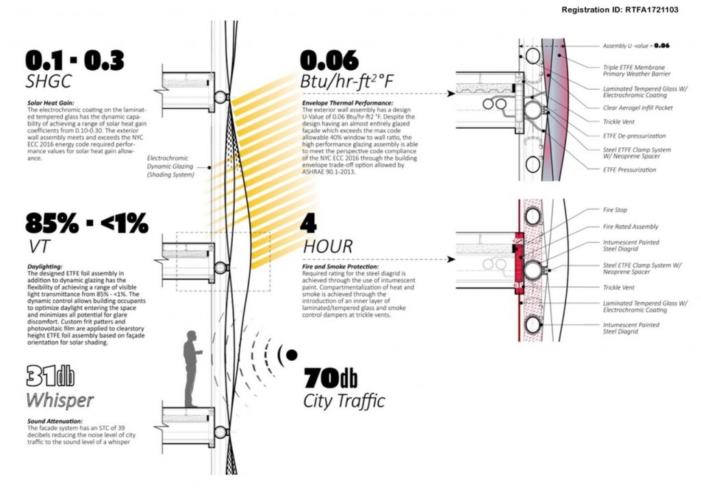 We recognize that ETFE by itself does present technical challenges and have therefore proposed a composite wall system in which ETFE serves as the primary weather, thermal, and solar control layer.