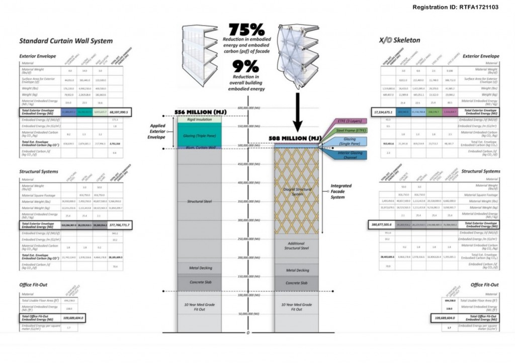 Results: Reduction in Embodied Energy X/O Skeleton was able to realize a 75% reduction in embodied energy and embodied carbon for the façade and a 9% reduction in overall embodied energy for the building.