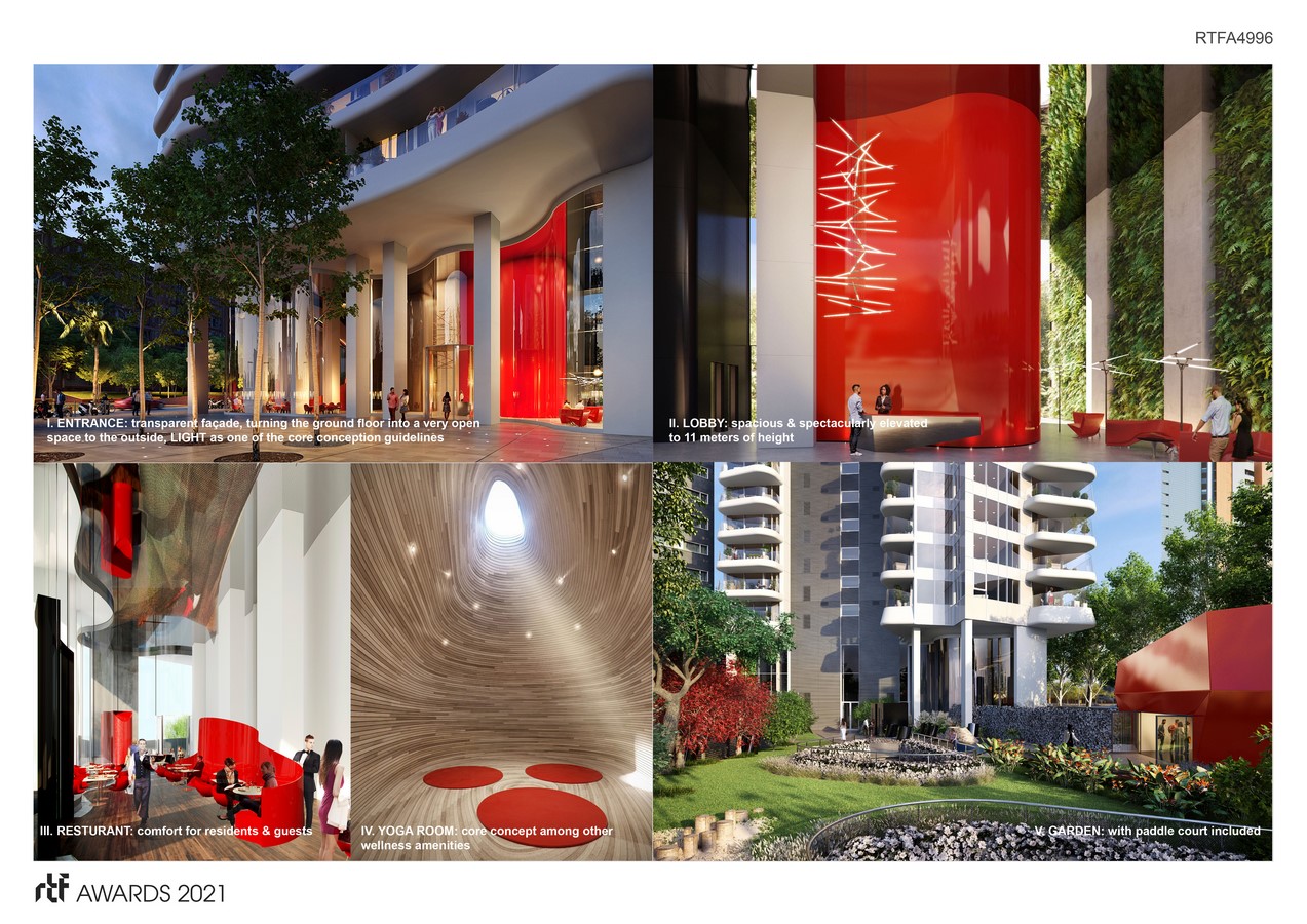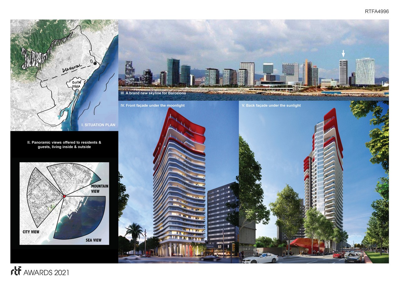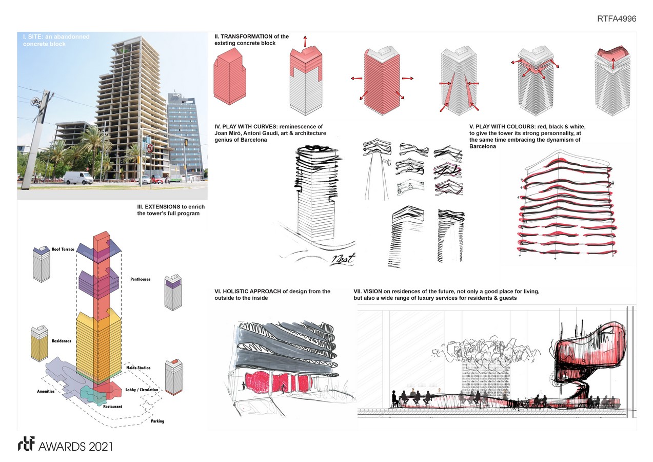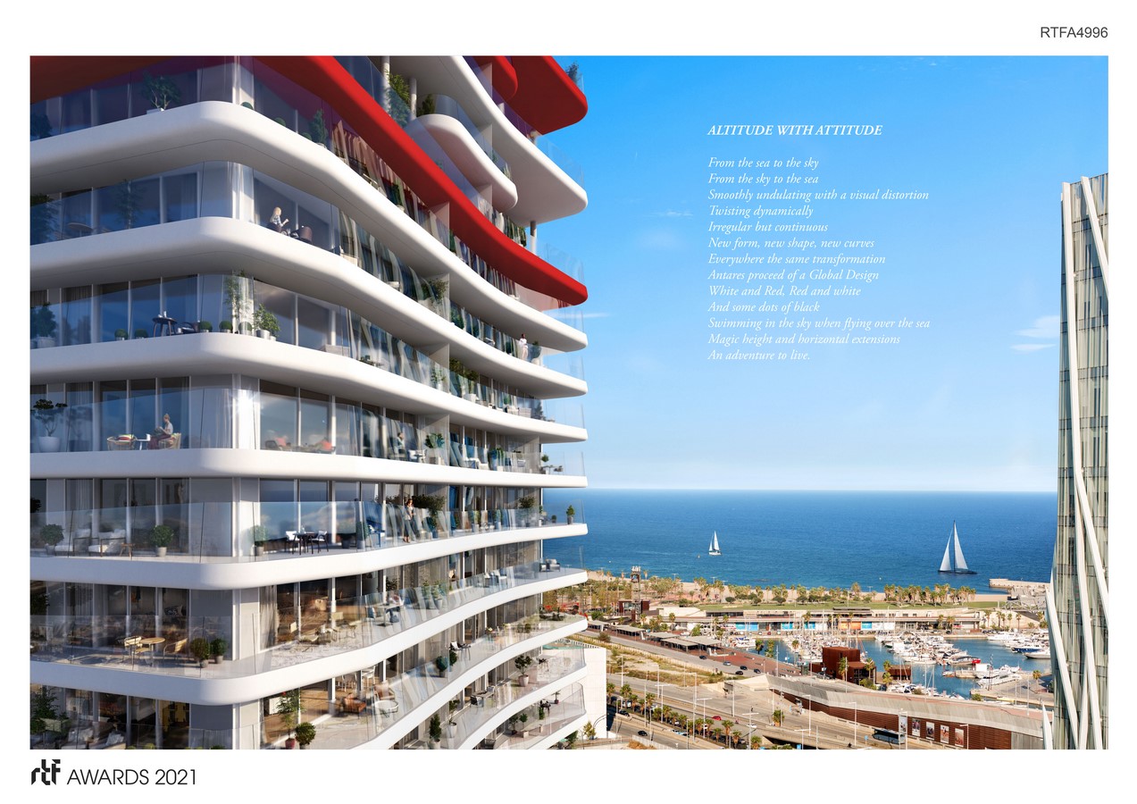 With Antares I have looked for a design that breathes dynamism in every place and every moment. That gives the building a strong identity and an enriching perception of time and space that shows a holistic approach of design from the outside to the inside by relaying the idea that each part of the building is a whole, with its components in relation and constant interactions between them and the whole. We have tried to play with the curves – something that reminds us of Joan Miró and Antoni Gaudí, the architectural genius of Barcelona – and with the colors – red, black and white – to give the building its own personality and turn it into something unique and unrepeatable.