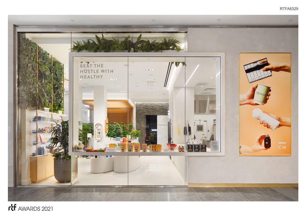 Before even entering the space, Clean Market distinguishes itself with its custom-tailored storefront design. Once you pass thru its threshold, Clean Market retail, the Nutridrip lounge and Thermostat each project a clearly defined, yet complimentary aesthetic. The design of the space emphasizes the unique features of the mall but also brings each visitor into a completely unexpected place. The space transports you from the hustle and bustle of the city, into a serene oasis bringing the customer closer to nature and to self.