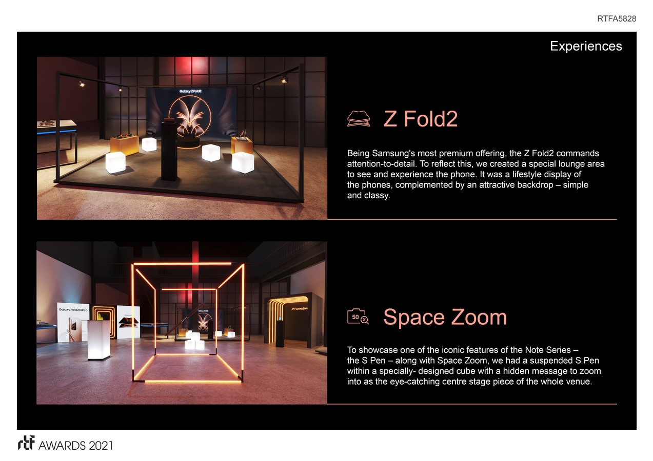 To make it buzz-worthy, Samsung wanted special activation zones, which were easy to follow, and where these new devices could be demonstrated and experienced. The event was carried out in a special area โ turning a once empty space into a live, party venue.