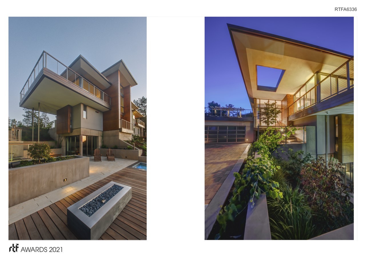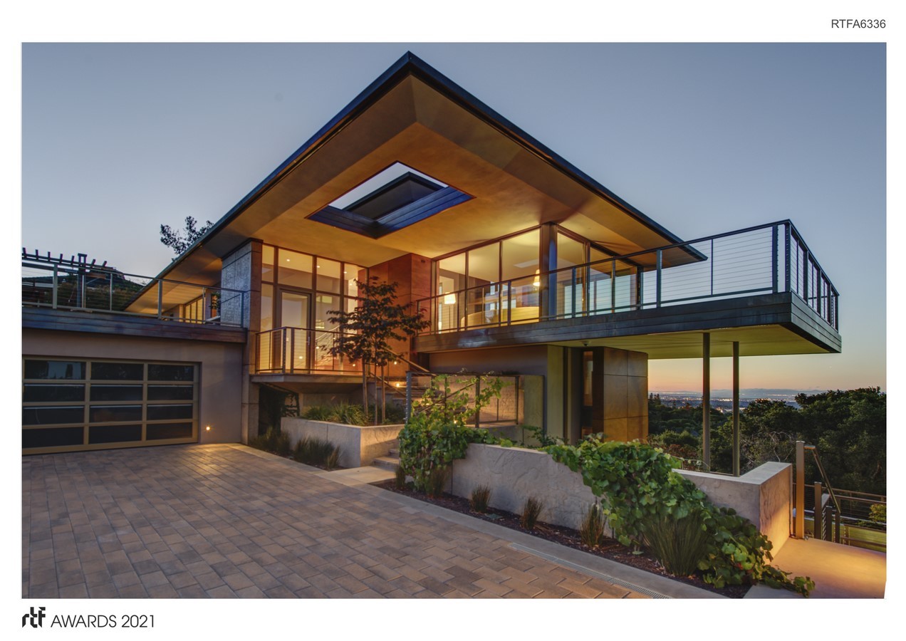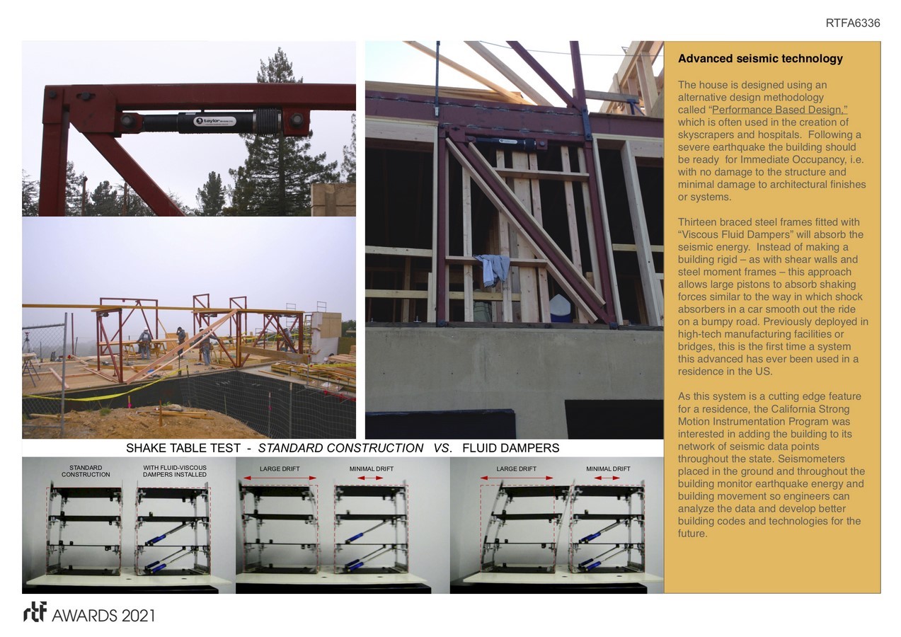 When a young San Francisco couple, tired of their long commute, decided to move closer to work in the Silicon Valley, they engaged 2M Architecture to design their dream home. The property they chose was a steeply sloped and wooded hillside, offering expansive views of Bay Area. Located just over 1 mile from the San Andreas Fault, they tasked their design team to find a superior solution to the “Life Safety” standard required by Code. The team combined advances in seismic analysis and building technology to create for the owners one of the most seismically resilient houses built in the US.