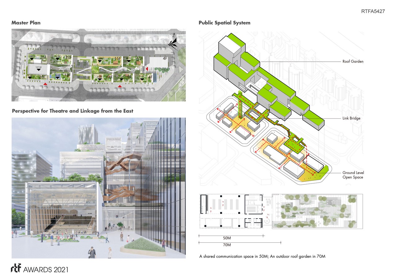 The building on two plots is connected by outdoor stairs in the north-south direction, with staggered turns and overlapping connections. The whole building is like a giant ship that about to sail, carrying the spirit of exploring.