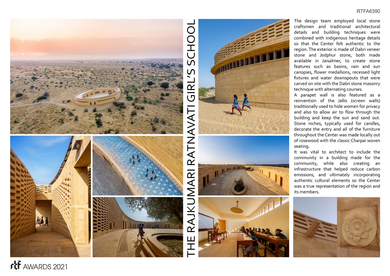 An architectural marvel located in the mystic Thar Desert region of Jaisalmer in Rajasthan, the complex will consist of three buildings: the The Rajkumari Ratnavati Girl’s School that will serve more than 400 girls, from kindergarten to class 10. The GYAAN Center will also consist of The Medha – a performance and art exhibition space with a library and museum, and The Women’s Cooperative where local artisans will teach mothers and other women weaving and embroidery techniques from the region.