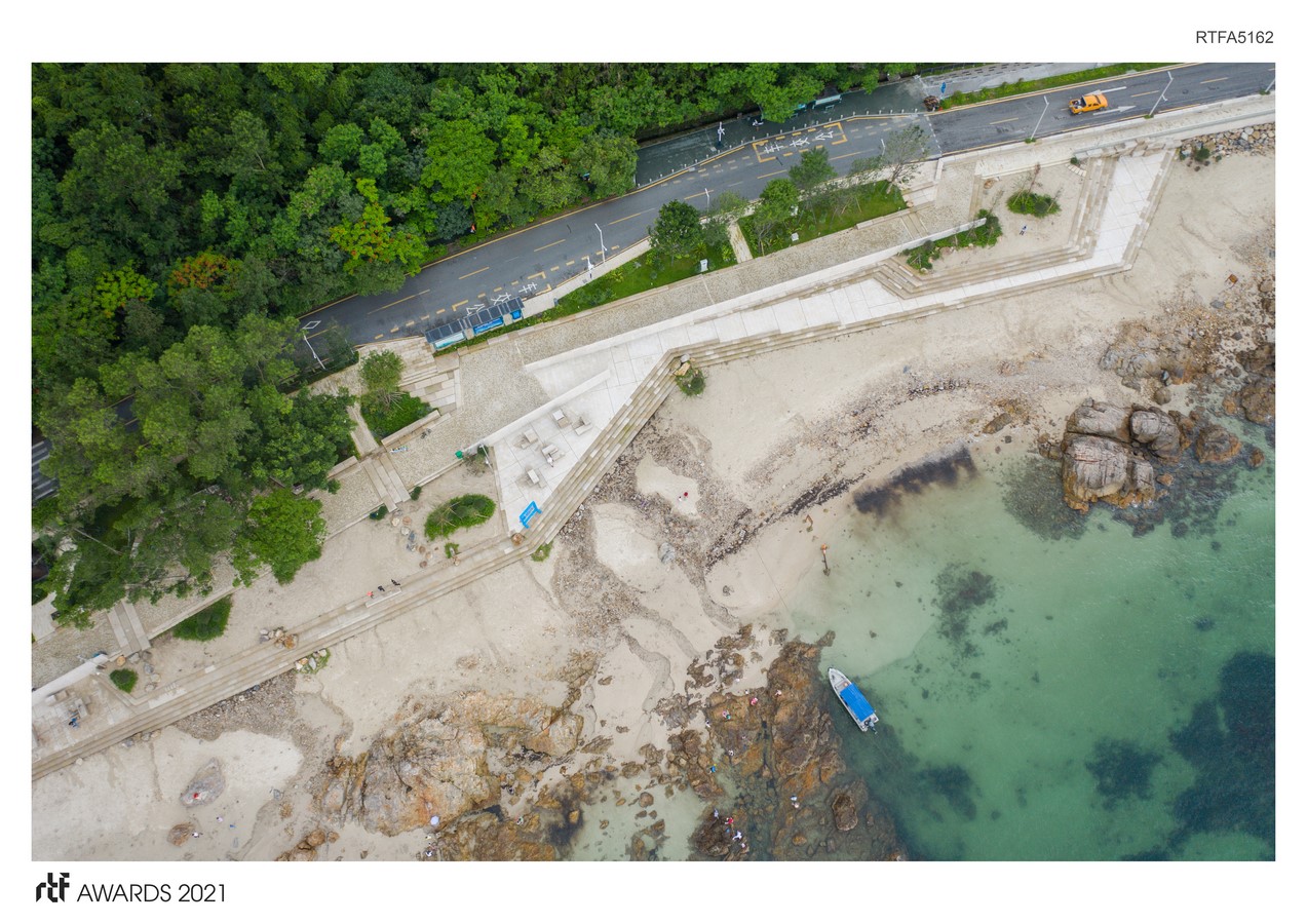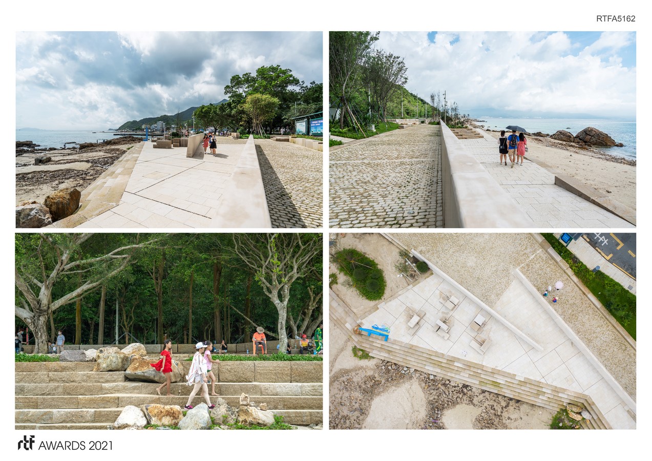 In May 2020 the Yangmeikeng Sea Boulevard was the first of six strategic development areas where the construction of the coastal defense was completed. On a 500m long strip, the performance of proposed nature-based strategies for the sea wall are tested, and materialization principles are explored and refined. The realization of this ‘demonstration zone’ is the first milestone in the construction of 18 kilometers of embankment by the end of 2021.