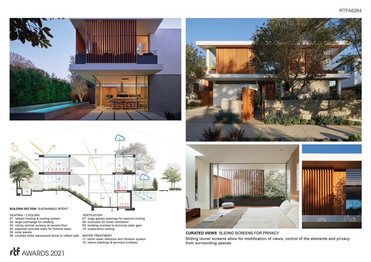 Dissolving the boundaries between spaces, both interior and exterior, is the primary design intent of this single-family residence in Santa Monica Canyon. At the street front, privacy is interpreted through the building envelope and material organization.