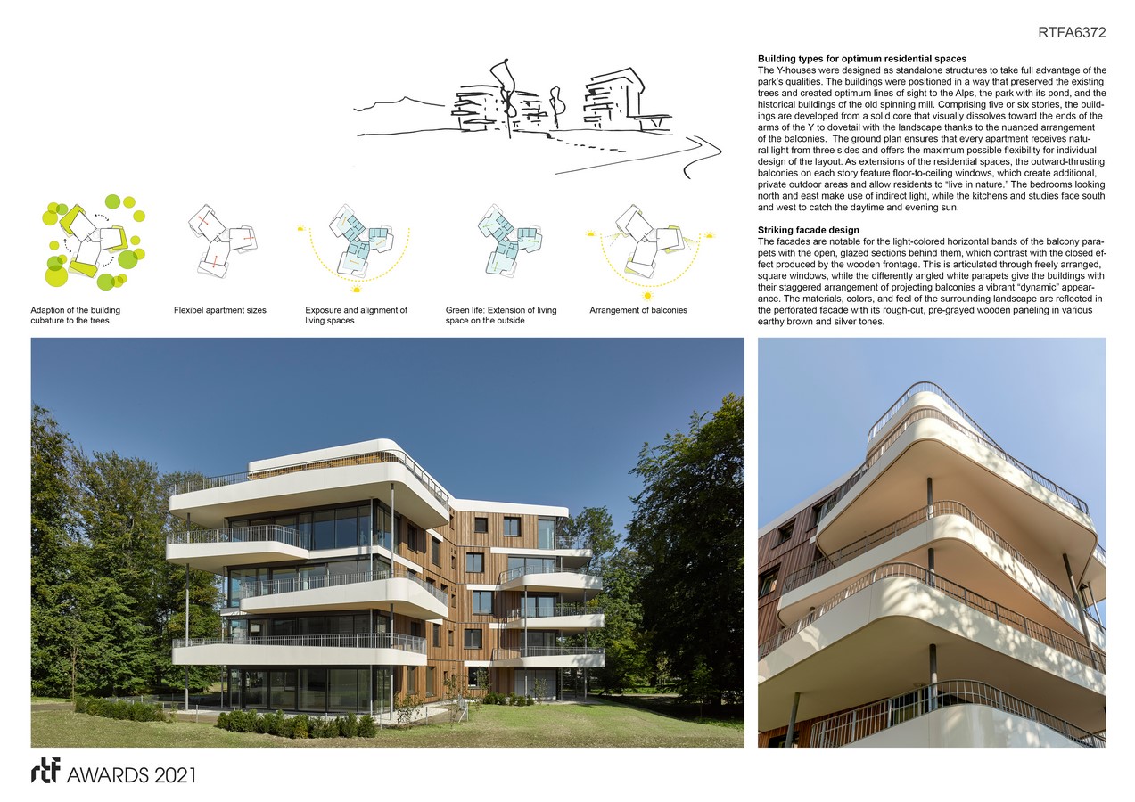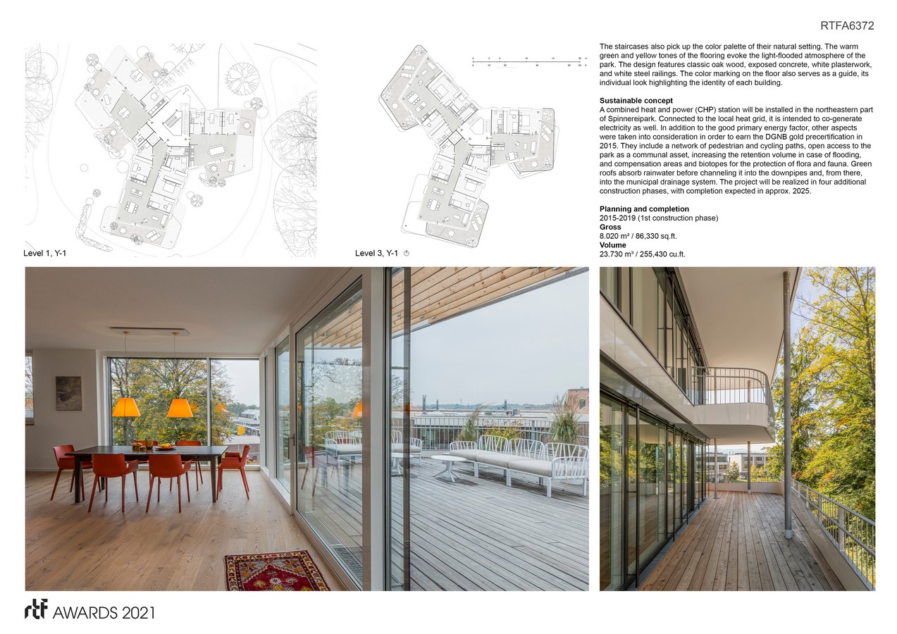 Two of the five Y-houses were erected in the first construction phase. In 2015, the complex was awarded gold precertification by the DGNB. The project will be realized in four additional construction phases, with completion expected in 2025.