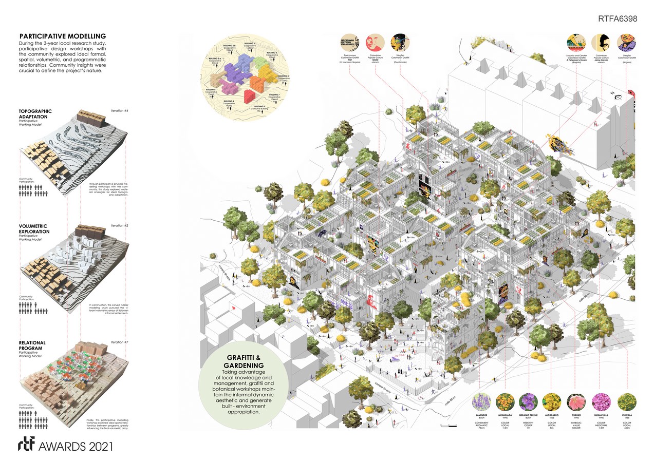 | Tribute: | HAMBO is wholeheartedly dedicated to the inhabitants of Bolonia, who decisively contributed to its development through participative design and who’s struggles and friendship profoundly inspired the project’s authors. In their honor, this project seeks to raise awareness of the urgency to re-think the future of habitational solutions for vulnerable populations worldwide. |