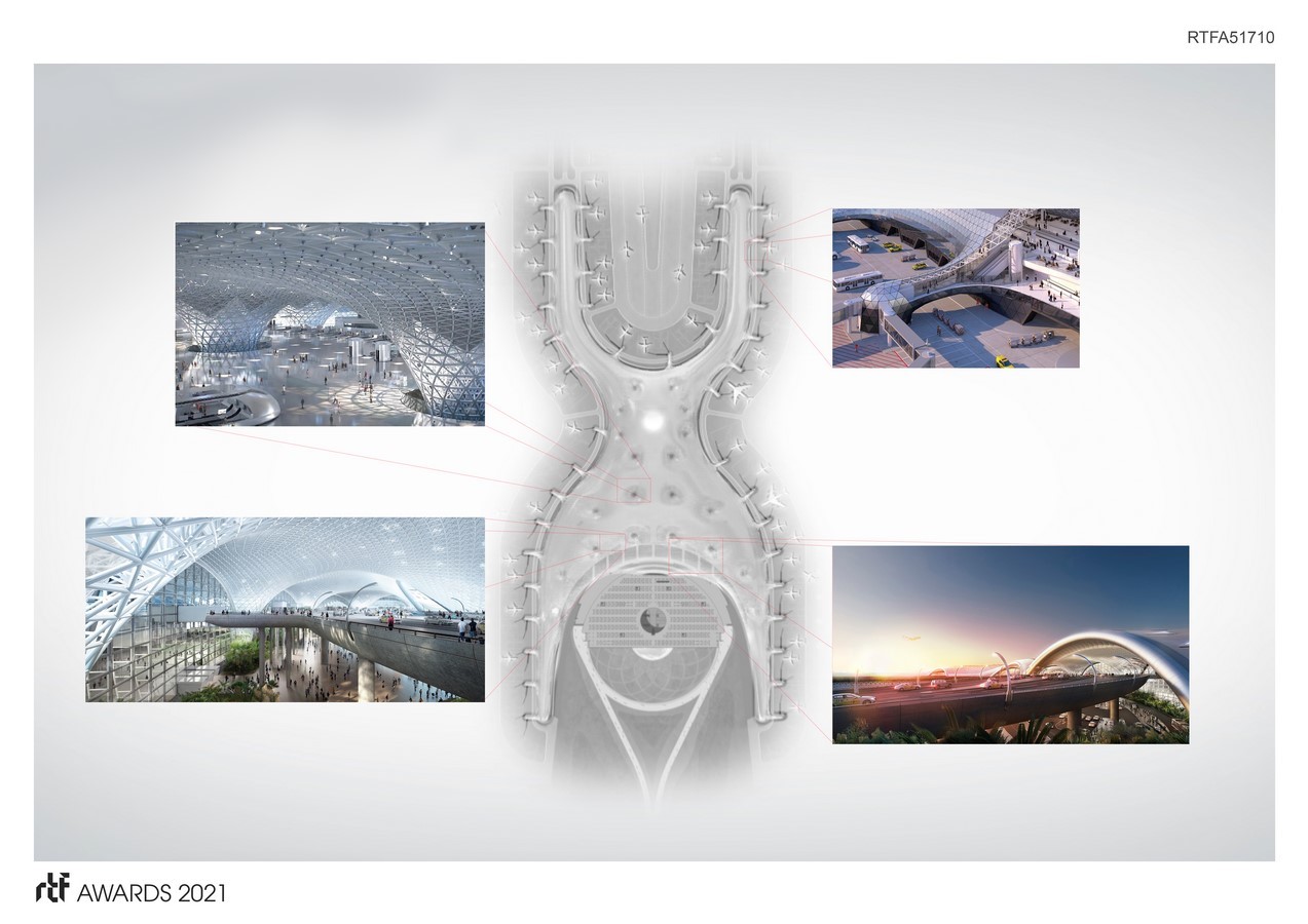 The FR-EE + Foster team has taken a truly holistic and exceptionally context-driven approach, designing a new model that will be the source of inspiration for future airports. It prioritizes being efficient and operationally flexible to accommodate new demands and changes in air travel. Above all, however, it aims to provide a beautiful, uplifting and memorable experience for people from all over the world. Over time, it will not only attract more visitors and users, but it will also serve as a catalyst for development and regeneration, transforming lives, the economy and the landscape.