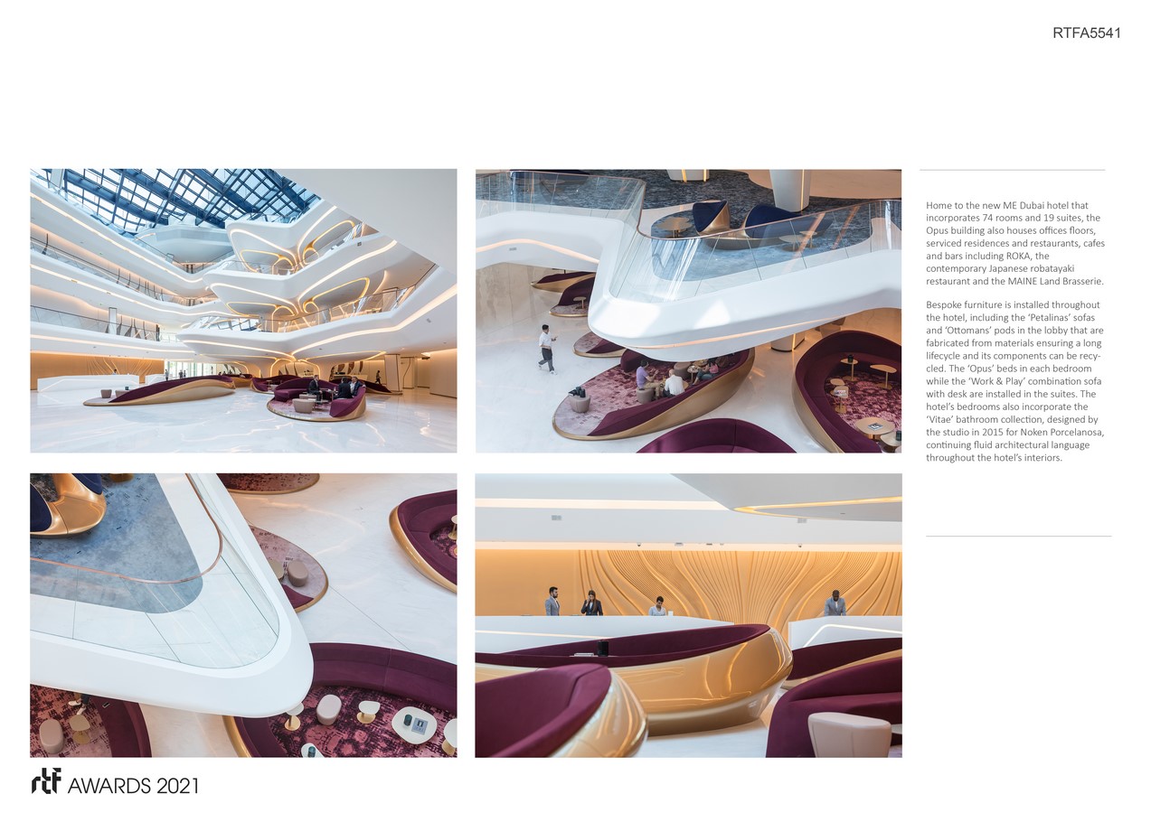 Home to the new ME Dubai hotel that incorporates 74 rooms and 19 suites, the Opus building also houses offices floors, serviced residences and restaurants, cafes and bars including ROKA, the contemporary Japanese robatayaki restaurant and the MAINE Land Brasserie.