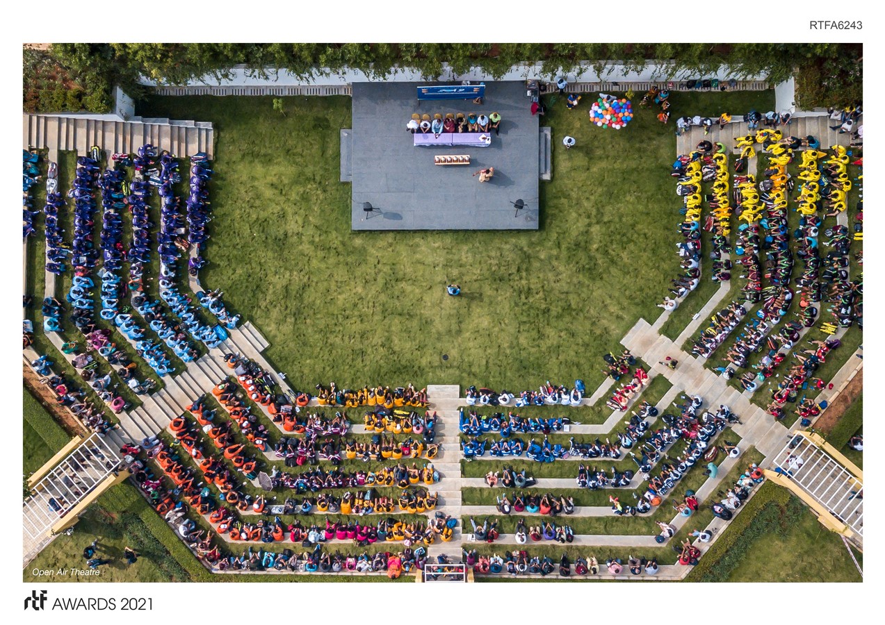 Elaborate water harvesting systems of 40 wells of 10 M depth, which are interconnected and monitored play an important role in balancing the water demand of the project, intending to be near zero discharge. Substantial daylight integration in the project has reduced the electricity demand by 80%. This reinforced our belief that a “Passive Right Approach” is the key to a successful project.