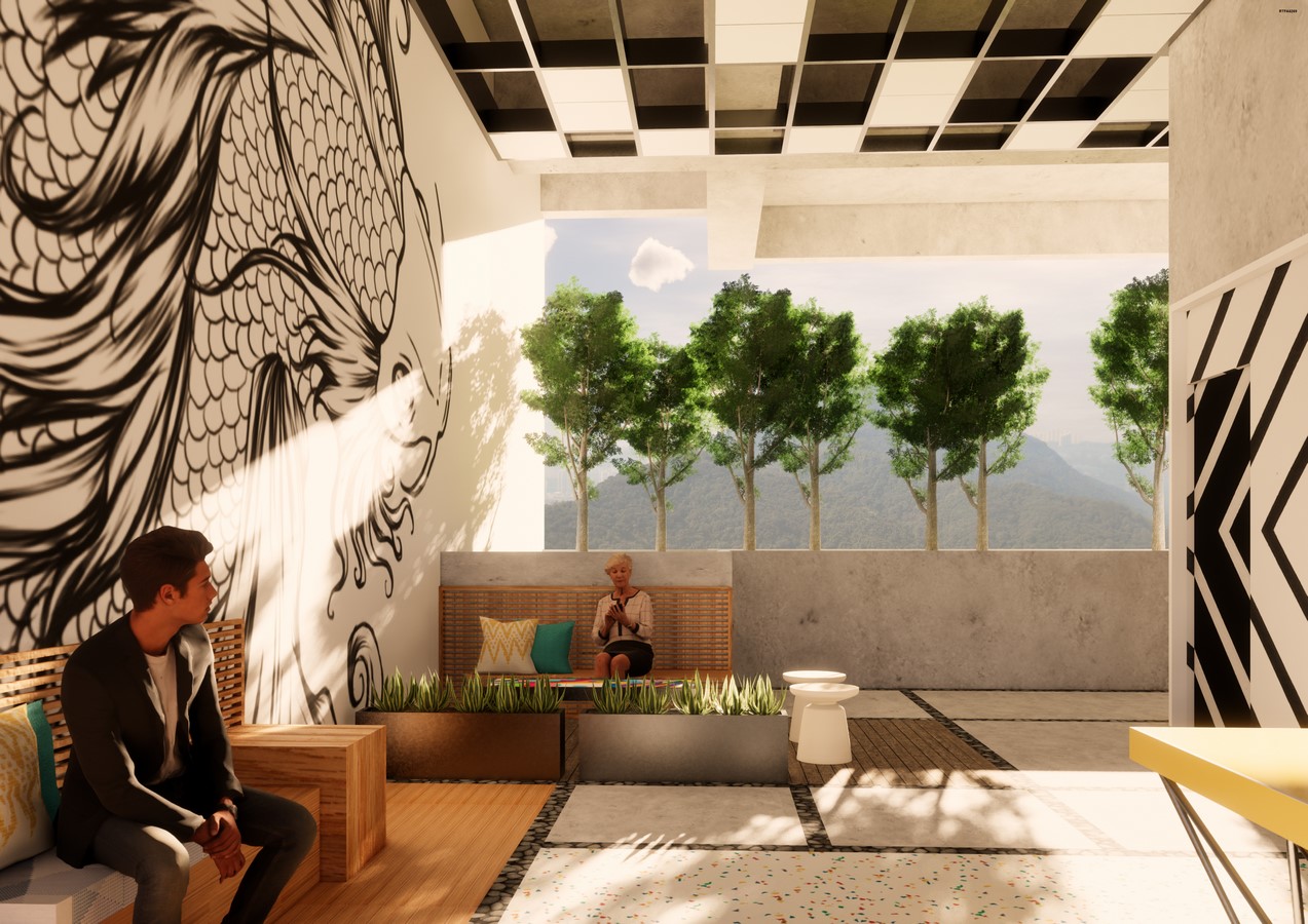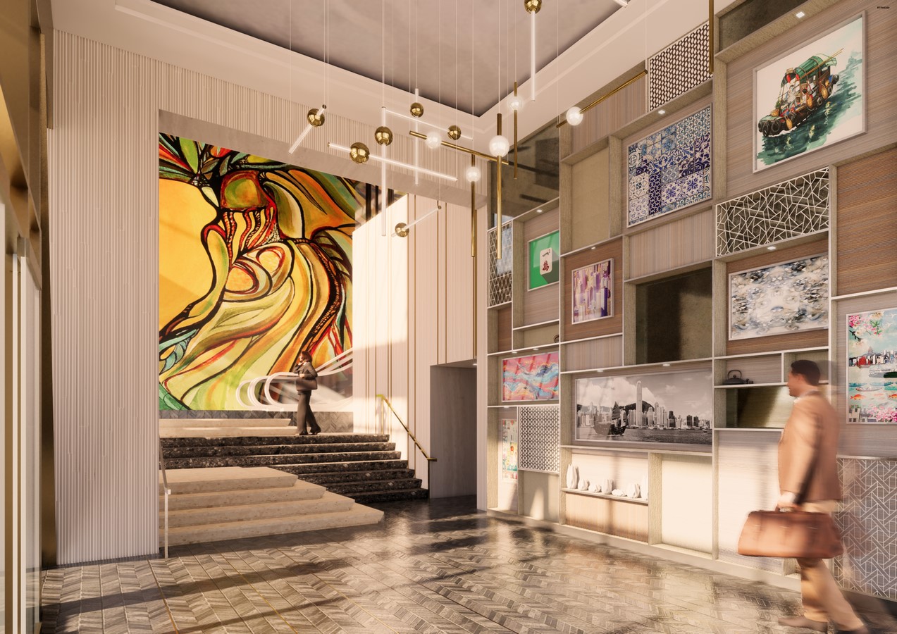 Originally tasked with designing the façade of this new office building in the trendy Wong Chuk Hang district of Hong Kong, The firm was soon asked to take on the interior design of the building’s public space, including the main entrance corridor, lobby, lounge, parking garage, and restrooms. To compete with similar office buildings in the district, the design needed to be upscale with an artistic edge and needed to have a distinct identity and story.