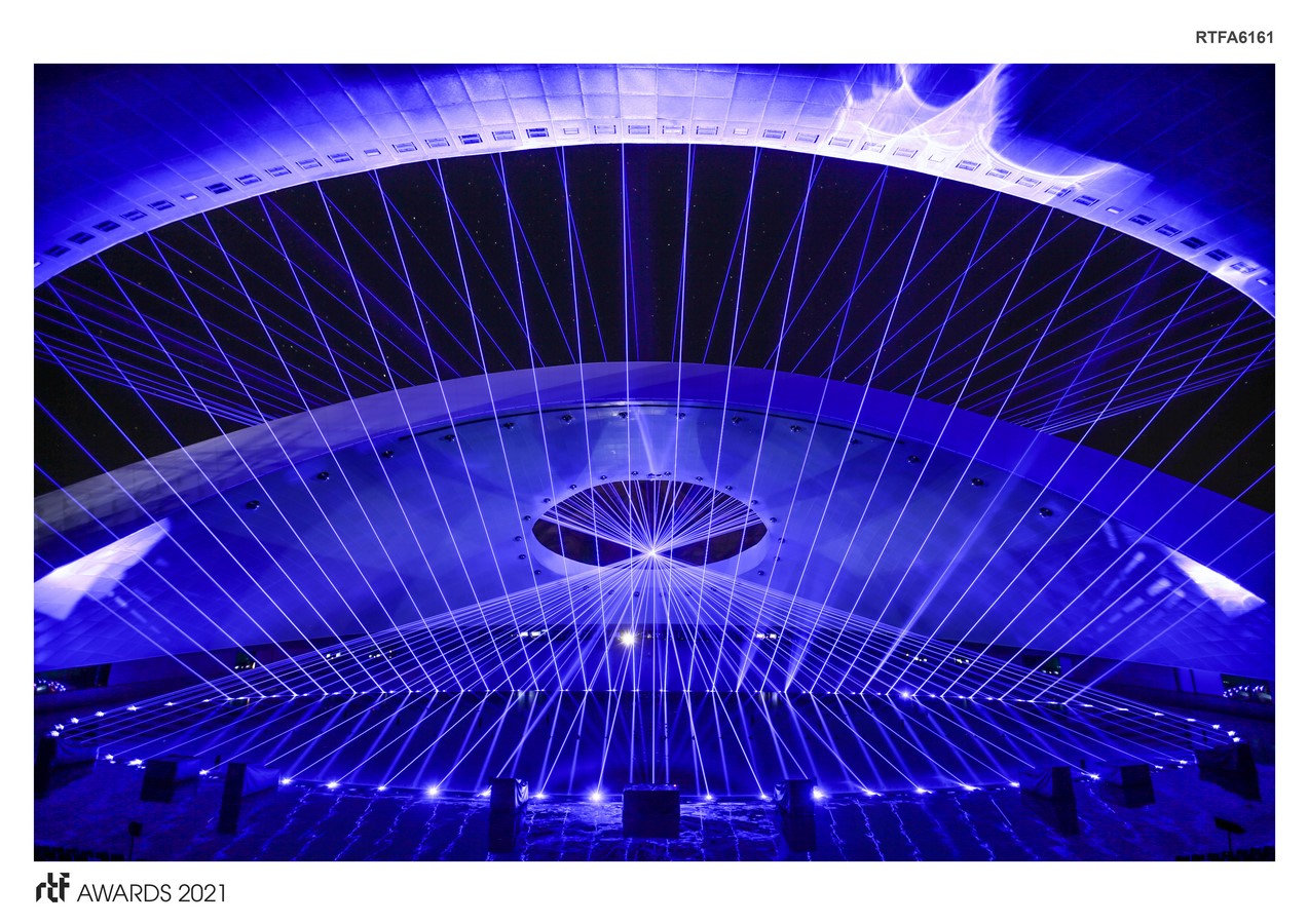 In the design process of the project, BIM technology was used to tackle the complexity of the whole design of the building, its volume and the complexity of its shapes. In order to protect the audience from the impact of low temperature and sand, the stands area must be equipped with a roof. In fact, multimedia equipment and show also need moderate protection to minimize the impact of weather factors, noise and light pollution caused by surrounding roads.