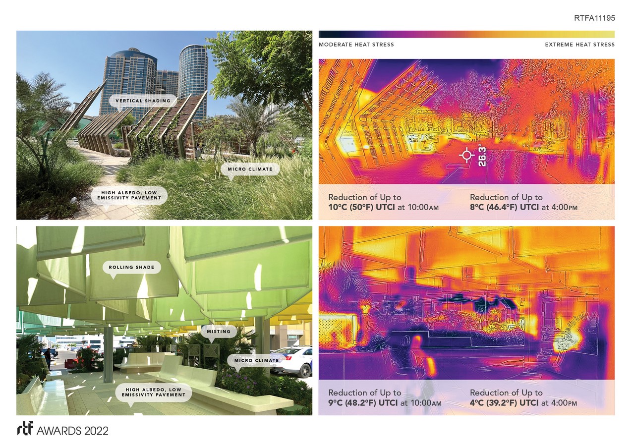 Informed by data-driven and evidence-based design, grounded in environmental analysis, and uniquely tailored to local character, the Abu Dhabi Climate Resilience Initiative provides inviting and thermally comfortable spaces that prioritize human comfort in the public realm. Thorough, local, and relentlessly researched, the Initiative introduces a design methodology and principles meant to inspire resiliency efforts in cities around the world. A new paradigm for public space design, the pilot programs serve as an example of an effective, multi-layered resiliency solution contributing to the global effort to combat extreme urban heat.