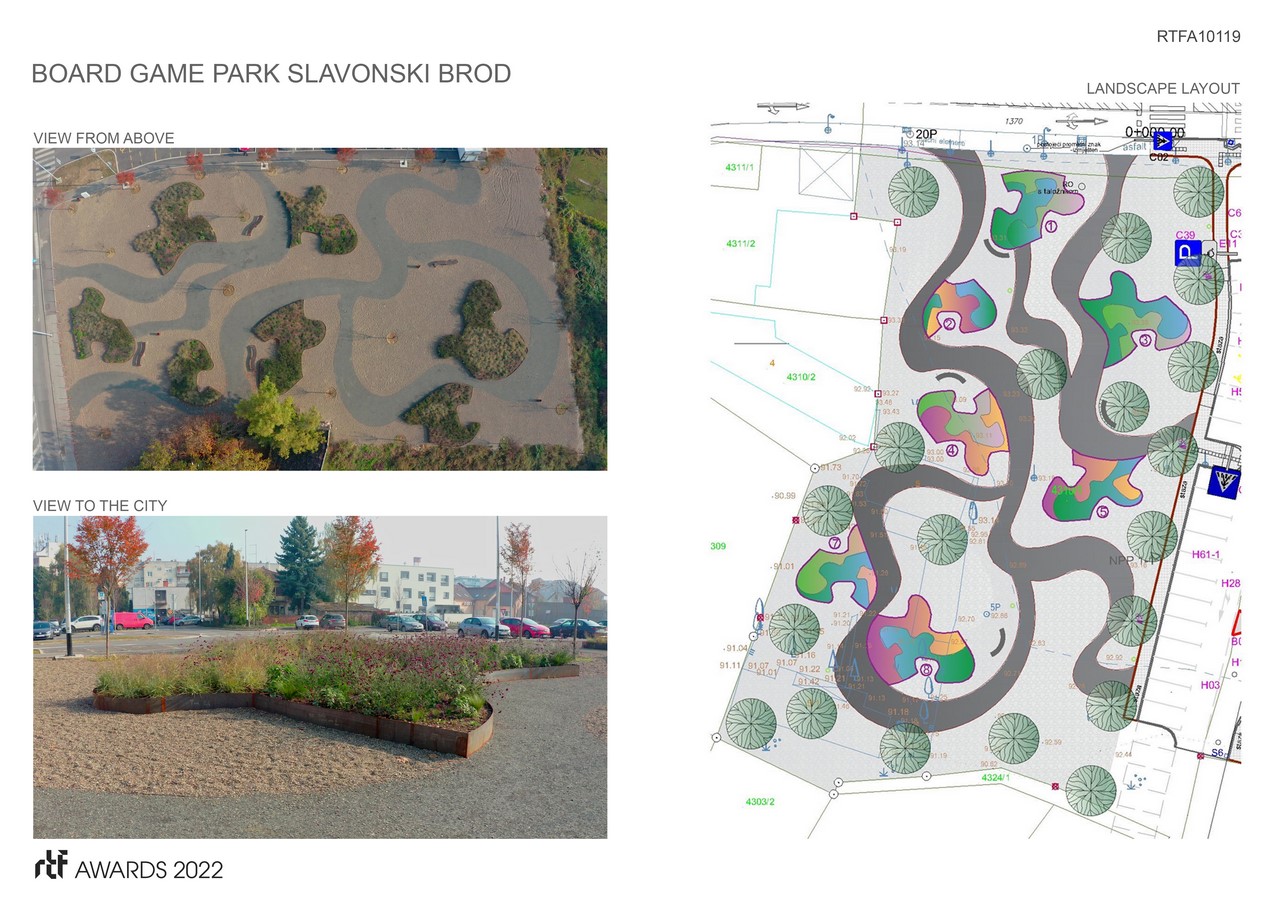 The Park was created on an area that was improvised parking lot, in the middle of the city Slavonski Brod, Croatia. The main challenge of the project was how to treat the surface of future park that was covered with a thick layer of compacted stone material.