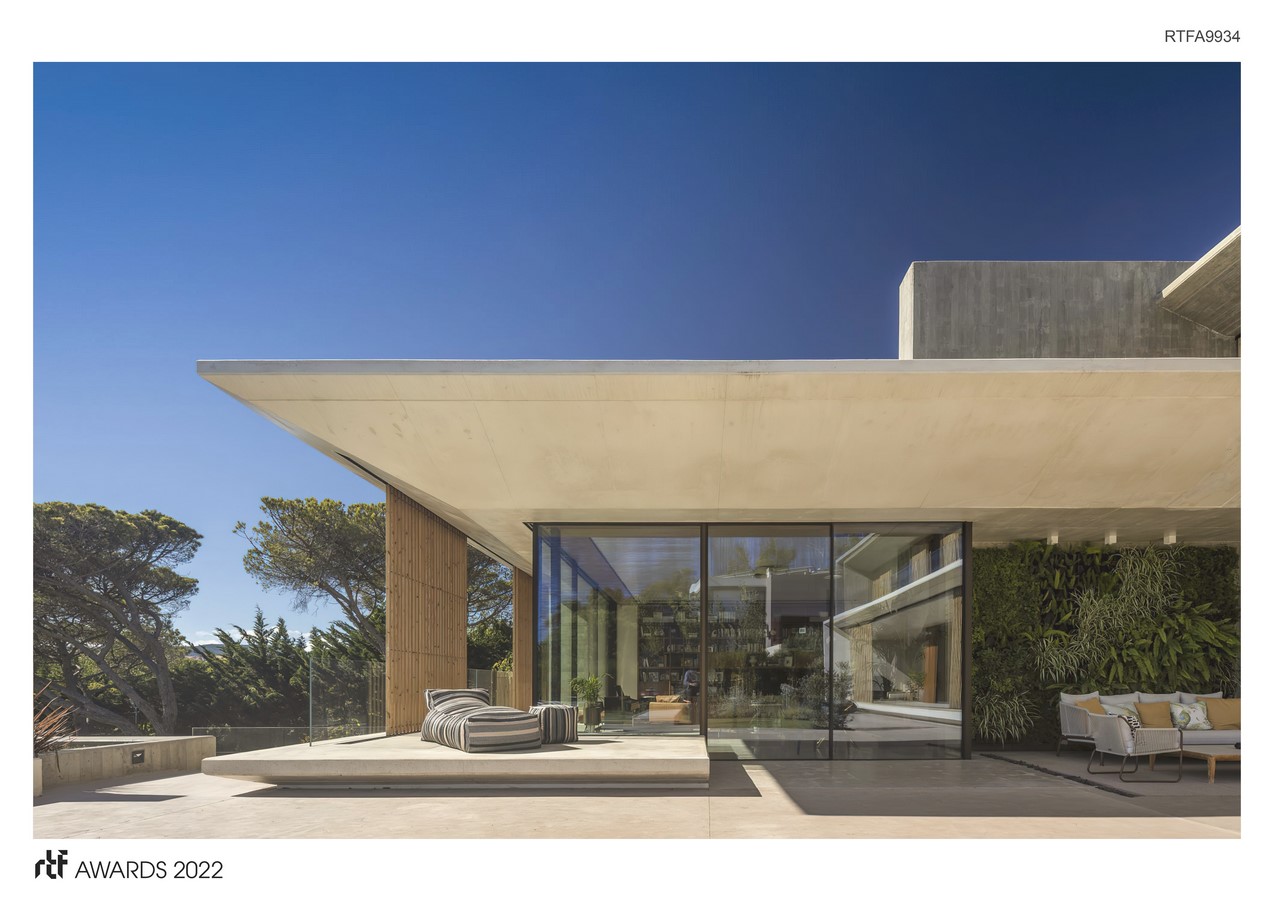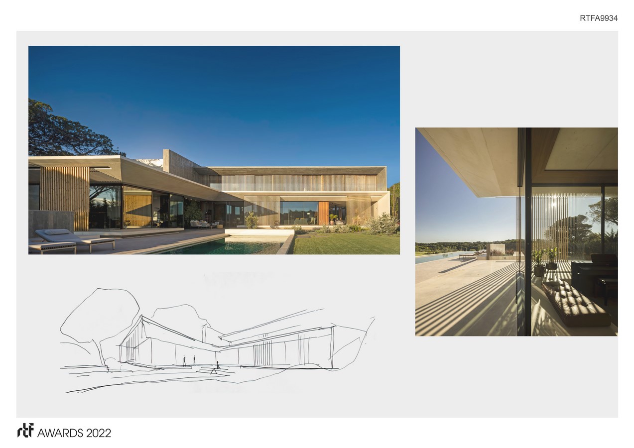 The materials used – concrete, timber and travertine – allow their various textures and colours to be intertwined with the splendour of nature.