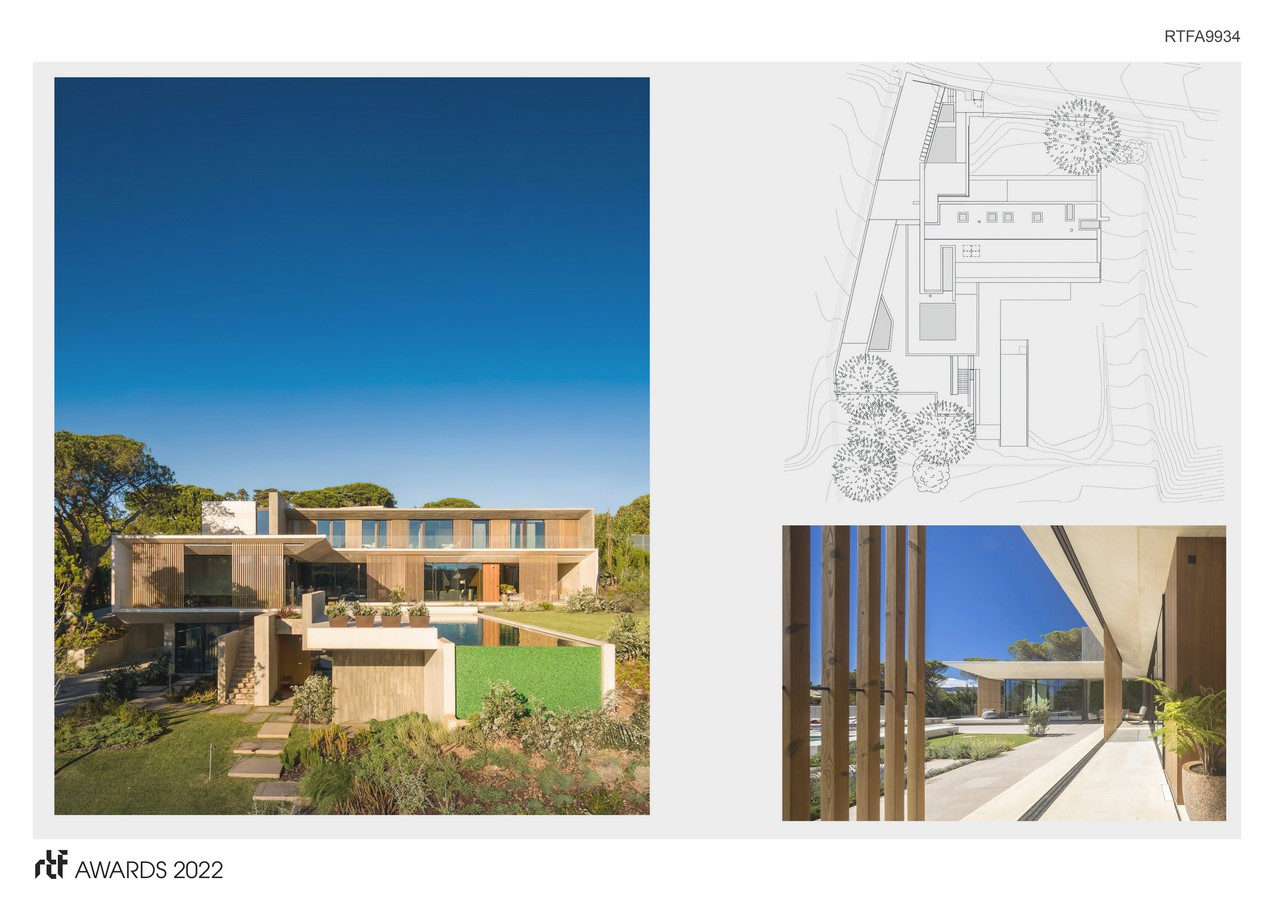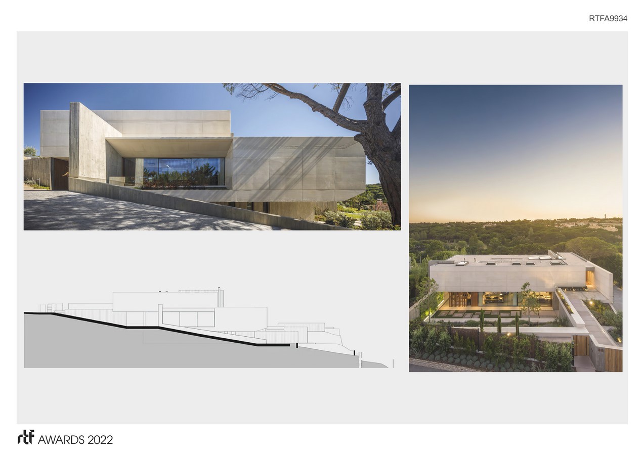 This Private House in Cascais makes the most of its hilltop location. The architectural concept evolves around fitting the structure in its natural surroundings. The exterior spatial perception of the house is projected onto the green treetops stretching as far as the eye can see.
