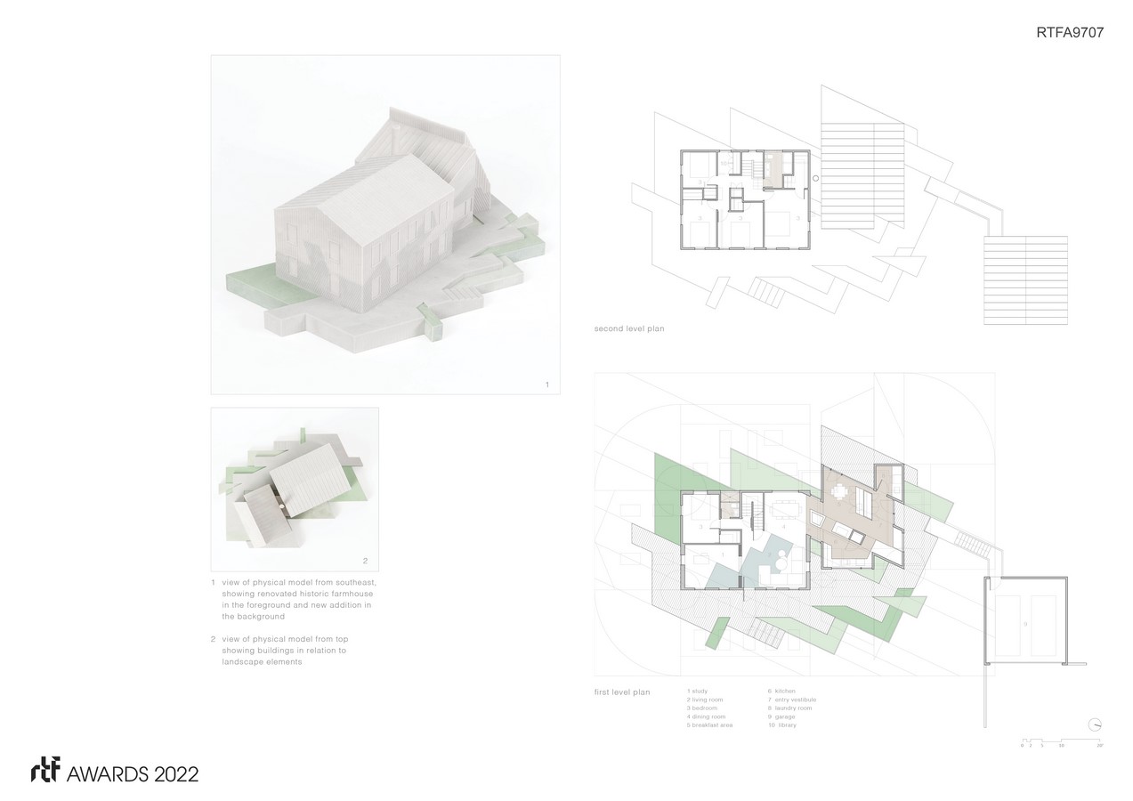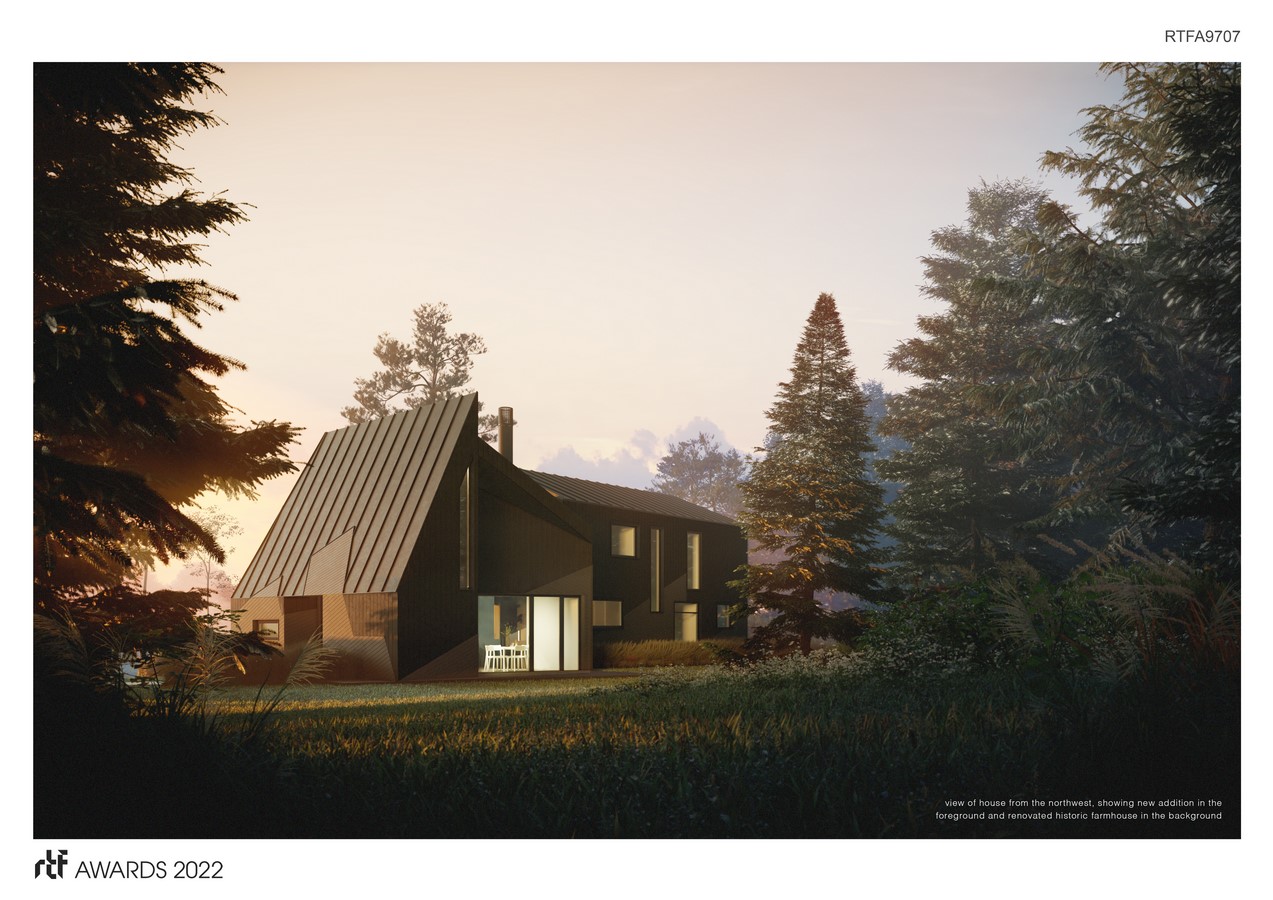 PF (Projected Farm) House is a renovation and addition to a farmhouse for a New York City based music and tech executive and his family. It located is in a rural area of New York State approximately three hours’ drive north of New York City. The existing house is a two-story post and beam structure built in 1813, with a one-story kitchen wing added in the 1960s. actual / office was asked to complete a renovation of all interior spaces in the original post and beam structure, design a new wing to replace the 1960s kitchen addition, and create a new cohesive facade and landscape design to link the whole project together.