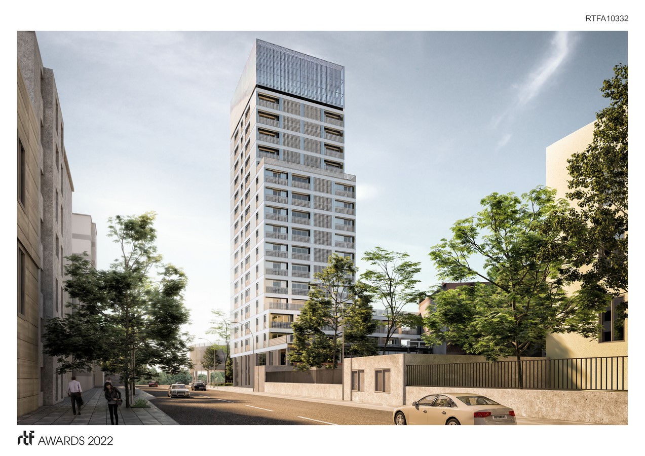 The building of 4ย 475 mยฒ built area is designed as a “capable” structure that can accommodate housing, offices and shops while ensuring significant operating economy. It is 16 levels high with a total height of 64 m. The shops are located on the first floor, the offices on the mezzanine and the housing from the first to the sixteenth floor. Thanks to a hybrid floor technology composed of wood and low-carbon concrete, the reversibility between offices and housing is optimal: the office spaces can easily be transformed into apartments and vice versa.